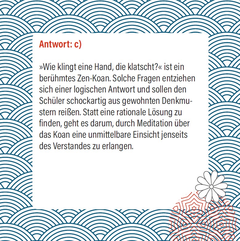 | Schlagworte | Bonsai • Buddhistische Tempel • Fuji • Geisha • Grüner Tee • hauptstadt japan • Hiroshima • Ikebana • Japan • japan einwohnerzahl • japan geschenk • Japanisch • japanische bräuche • Japanischer Garten • Japanische Schriftzeichen • japanische Traditionen • Japan Kultur • japan quiz • Japan Sehenswürdigkeiten • Japan Spiel • Kimono • Land der aufgehenden Sonne • lustige fragen und antworten • lustige quizfragen für erwachsene • Manga • Mochi • Ninja • Partyspiel • quiz fragen • Quizfragen • quizfragen und antworten • Quizspiele • quizspiele für erwachsene • Ratespiel • Reis • Reisespiel • Sake • Samurai • Shogun • Spieleabend • Spiel für Erwachsene • Spiel für unterwegs • Sumo • Sushi • Tokyo • Wissensquiz • Zen • Zen Garten |