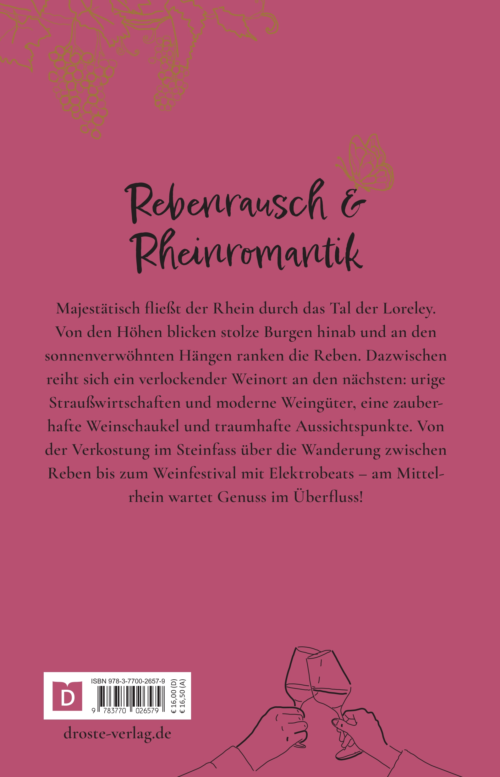 Majestätisch fließt der Rhein durch das Tal der Loreley. Von den Höhen blicken stolze Burgen hinab und an den sonnenverwöhnten Hängen ranken die Reben. Dazwischen reiht sich ein verlockender Weinort an den nächsten: urige Straußwirtschaften und moderne Weingüter, eine zauberhafte Weinschaukel und traumhafte Aussichtspunkte. Von der Verkostung im Steinfass über die Wanderung zwischen Reben bis zum Weinfestival mit Elektrobeats - am Mittelrhein wartet Genuss im Überfluss!