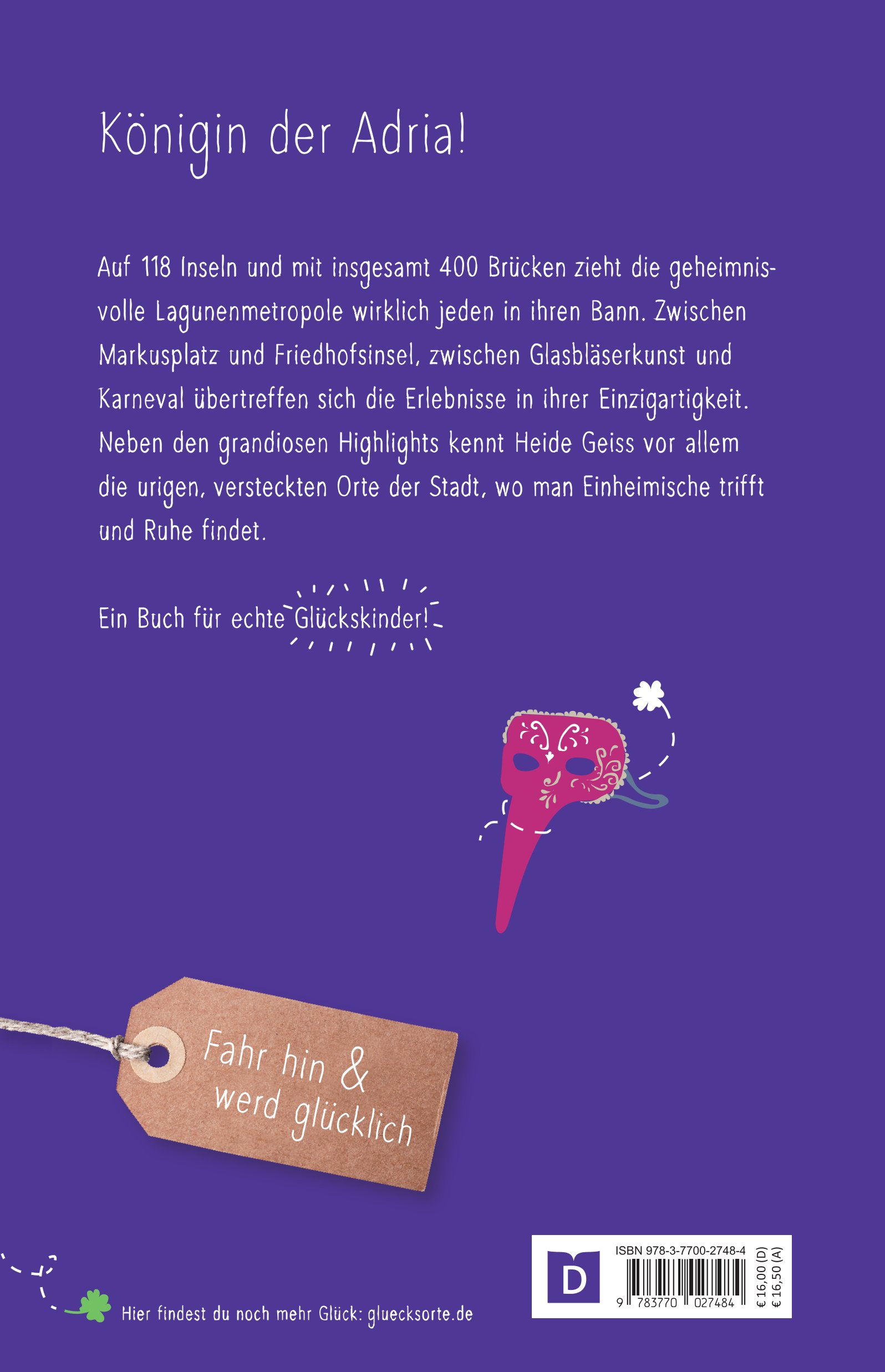 Auf 118 Inseln und mit insgesamt 400 Brücken zieht die geheimnisvolle Lagunenmetropole wirklich jeden in ihren Bann. Zwischen Markusplatz und Friedhofsinsel, zwischen Glasbläserkunst und Karneval übertreffen sich die Erlebnisse in ihrer Einzigartigkeit. Neben den grandiosen Highlights kennt Heide Geiss vor allem die urigen, versteckten Orte der Stadt, wo man Einheimische trifft und Ruhe findet.
