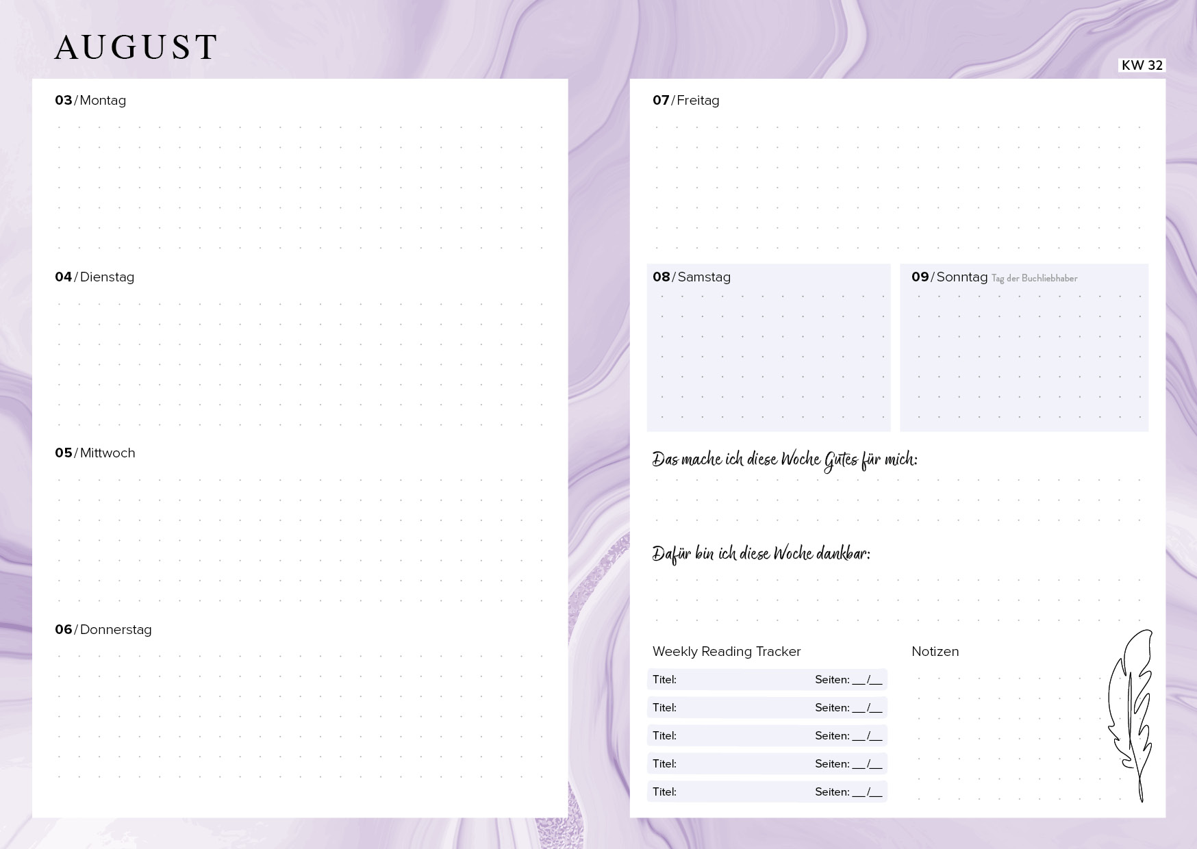 - Genug Platz für wichtige Termine, monatliche Neuerscheinungen, Lieblingsbücher und Notizen