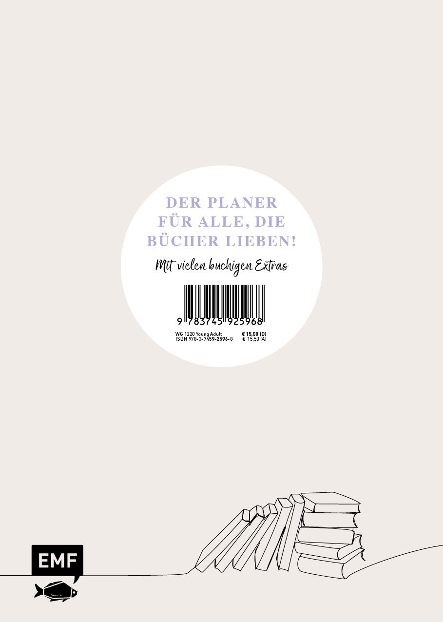 Mit einem praktischem Leseband und genug Platz für monatliche Neuerscheinungen, wichtige Termine, Notizen und Lieblingsbücher sowie vielen Mitmachseiten, die zum Ausfüllen und kreativ sein einladen, ist dieser Jahresplaner der tägliche Begleiter für Buchliebhaber*innen. Neben den praktischen Wochen- und Monatsübersichten gibt es viele tolle Extras wie Buchbingos, Reading-Tracker und eine Auswahl zum Book of the Year.