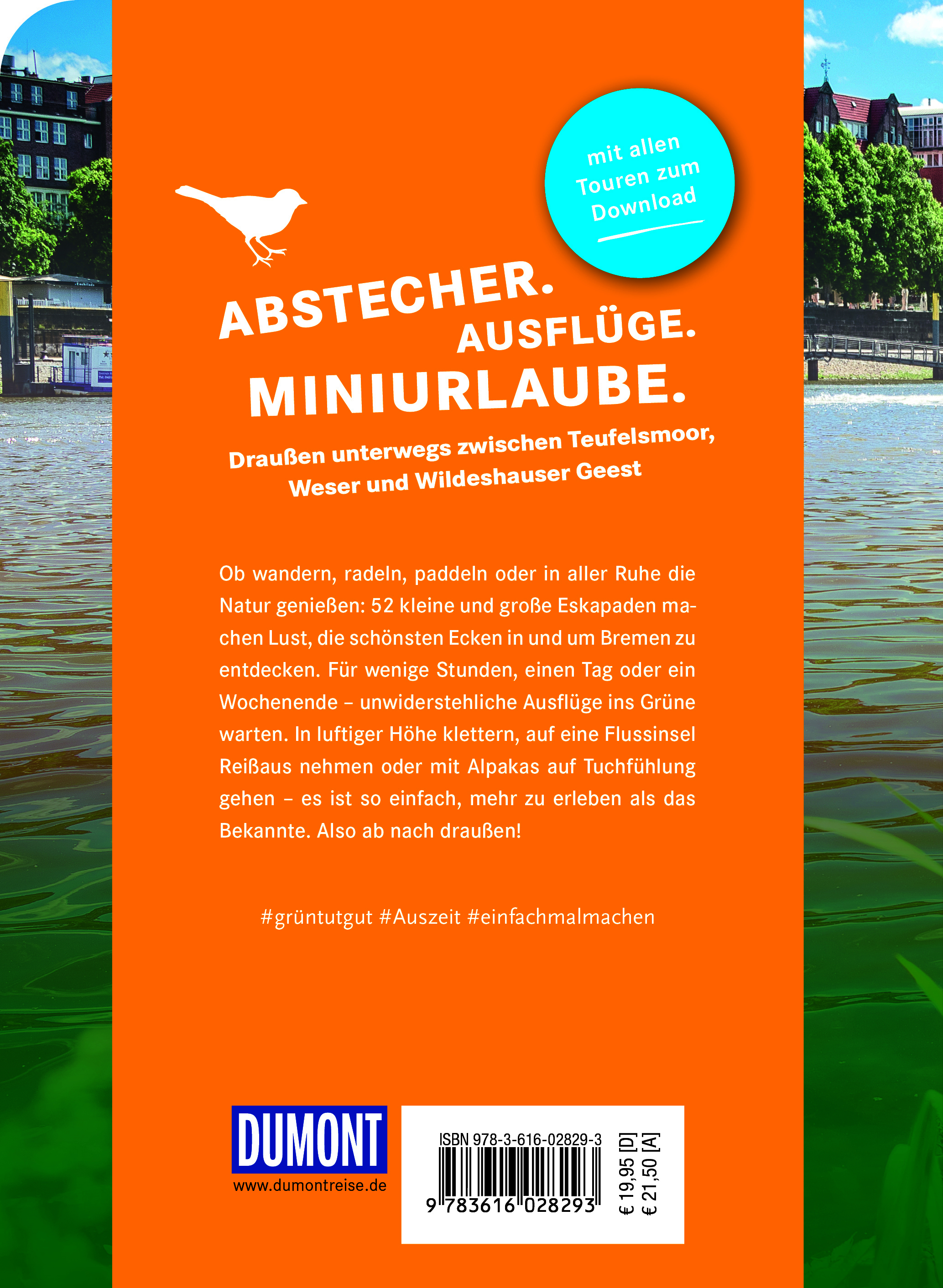 Ob wandern, radeln, paddeln oder in aller Ruhe die Natur genießen: 52 kleine und große Eskapaden machen Lust, die schönsten Ecken in und um Bremen zu entdecken. Für wenige Stunden, einen Tag oder ein Wochenende - unwiderstehliche Ausflüge ins Grüne warten. Kletterpartie in luftiger Höhe, Reißaus nehmen auf eine Flussinsel oder mit flauschigen Alpakas auf Tuchfühlung gehen, es ist so einfach, mehr zu erleben als das Bekannte. Also ab nach draußen!