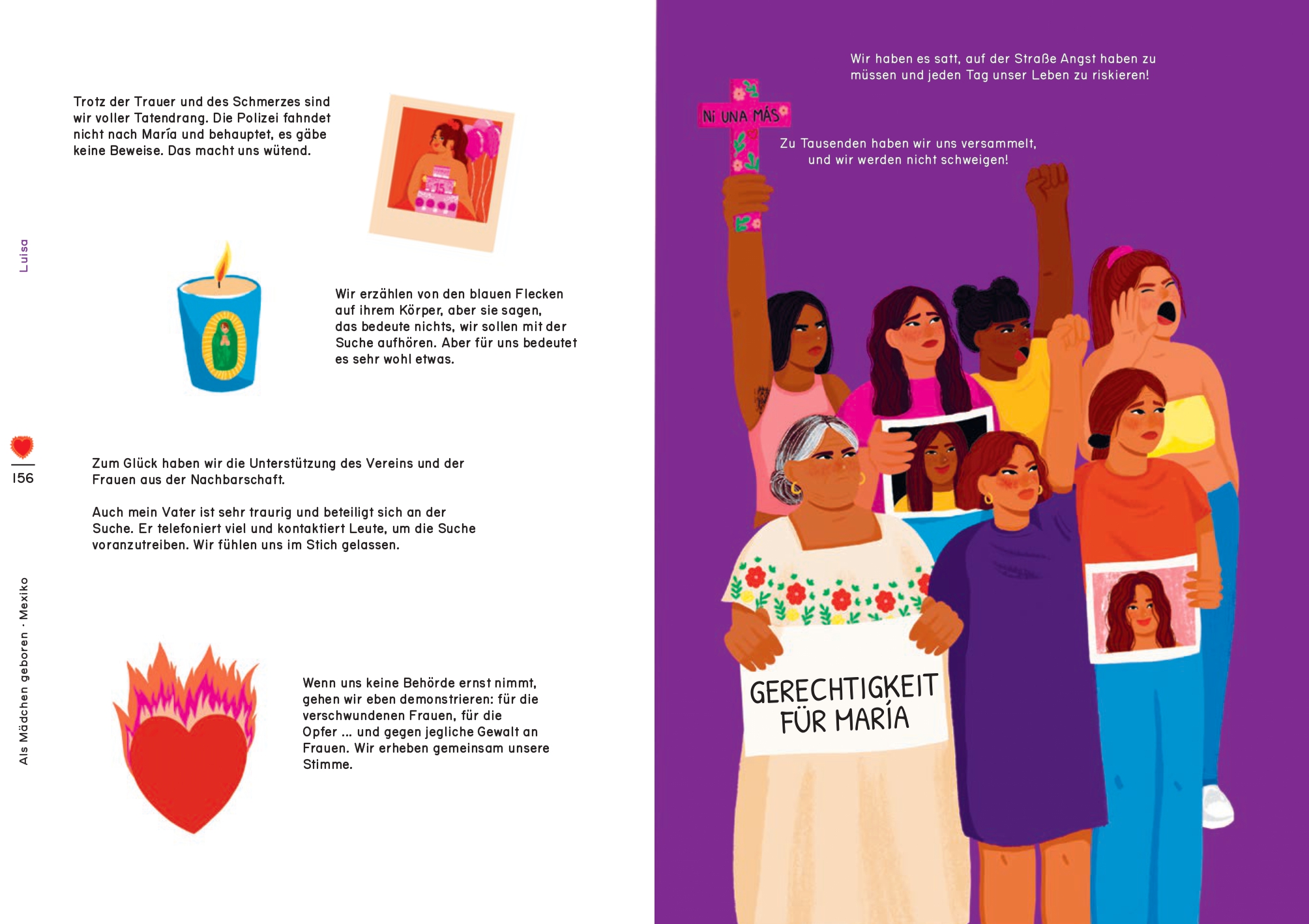 | Schlagworte | Afghanistan • Aktivismus • Armut • Aufklärungsbuch • Befreiung • Belästigung • Bildung • Bodyshaming • Dickenfeindlichkeit • Einschränkungen • Entrechtung von Frauen • Erfahrungen • Erwachsenwerden • Feminismus • Femizide • Frankreich • Frauen • Frauenhandel • Frauenmorde • Frauenrechte • Frausein • Freiheit • Geburt • Gefahr • Gender • Genitalverstümmelung • Geschlechtergerechtigkeit • geschlechtsspezifischer Gewalt • gesellschaftliche Stereotypen • Gewalt • Gleichberechtigung • good night stories for rebel girls • Häusliche Gewalt • Kenia • Körperbild • Kraft • Mädchen • männliche Privilegen • matrilineare Gesellschaft • Matrilinearität • Mehrgewichtigkeit • Menstruation • Menstruationsriten • Mexiko • Mut • Nepal • Not • Patriarch • patriarchale Gesellschaft • patriarchale Kulturen • patriarchale Strukturen • patriarchale Traditionen • Periode • Periodenarmut • Prostitution • Ratgeber • Sachcomic • Schicksal • Schönheitsideale • Selbstbestimmung • Sexualisierte Gewalt • Sexuelle Belästigung • Sexueller Missbrauch • Solidarität • Soziale Normen • spurlos verschwunden • Tabus • TERRE DES FEMMES • Ungerechtigkeit • Ungerechtigkeiten • Veränderungen • verschwunden • Widerstand • Zugang zu Bildung • Zwangsheirat • Zwangsverheiratung |