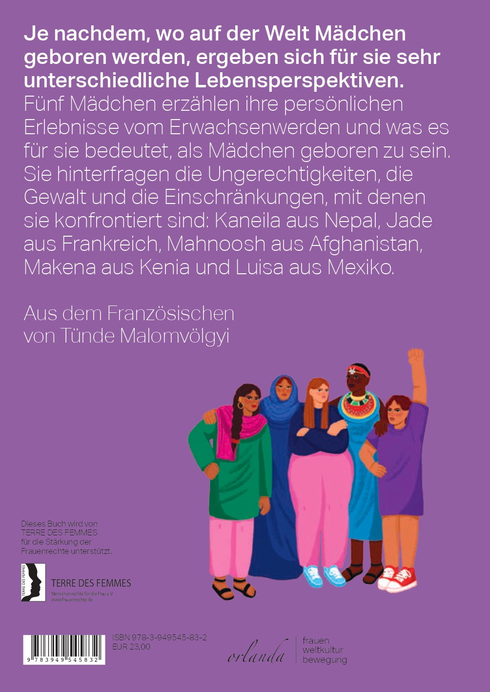 Fünf Mädchen aus verschiedenen Ländern erzählen ihre persönlichen Erlebnisse vom Erwachsenwerden und was es für sie bedeutet, als Mädchen geboren zu sein. Sie hinterfragen die Ungerechtigkeiten, die Gewalt und die Einschränkungen, mit denen sie konfrontiert sind: Kaneila aus Nepal, Jade aus Frankreich, Manoosh aus Afghanistan, Makena aus Kenia und Luisa aus Mexiko.