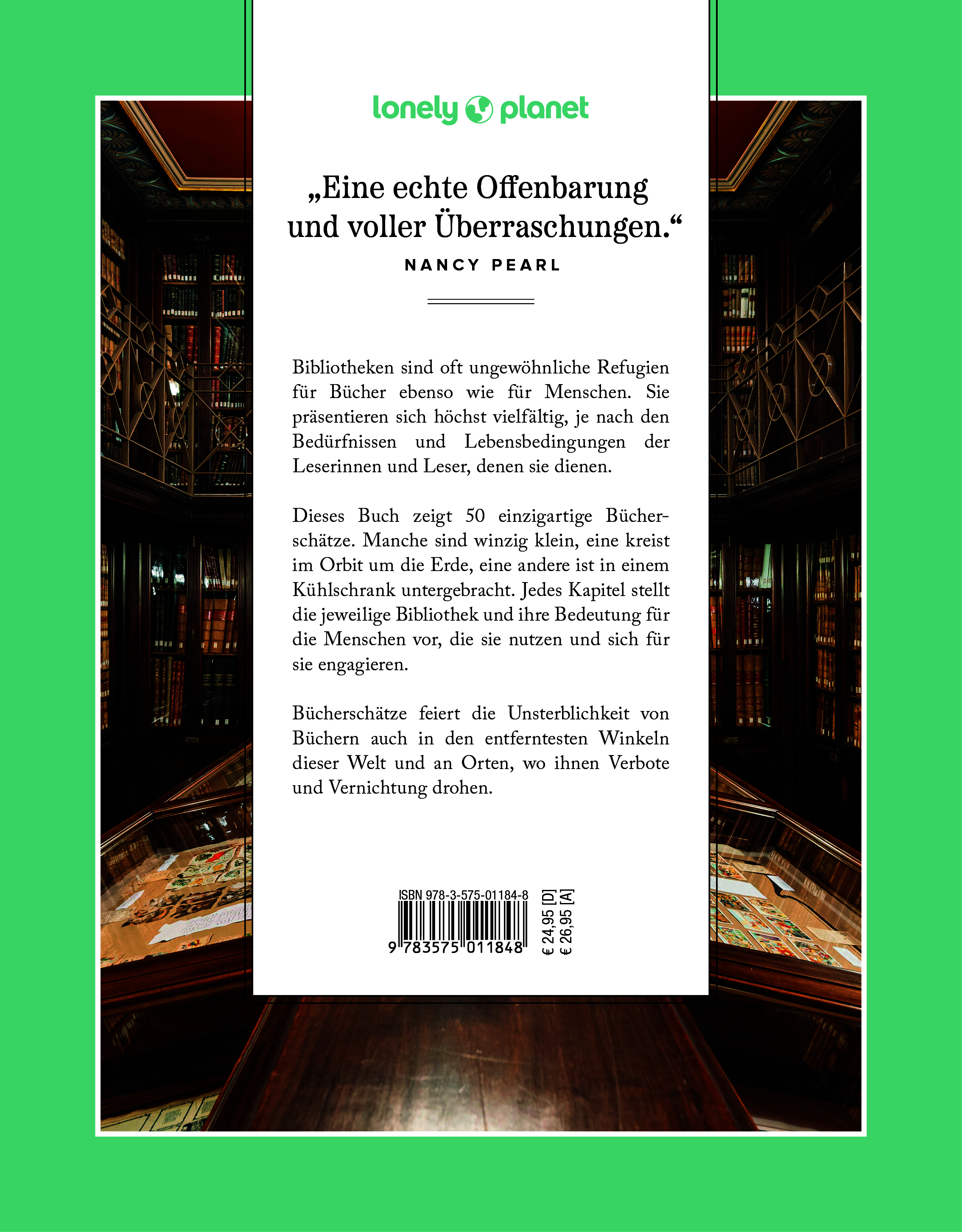 OB IN EINEM KÜHLSCHRANK in Neuseeland, einer Telefonbox in London oder als mobile Bücherei auf dem Rücken eines Esels quer durch Südamerika - Orte, an denen man Bücher ausleihen kann, gibt es überall und manchmal vielleicht gerade dort, wo man sie am wenigsten erwartet. Lonely Planets "Bücherschätze" stellt 50 solcher außergewöhnlicher Orte weltweit vor und erzählt die Geschichten der Menschen dahinter, von ihrem Engagement für Bücher und von der Leseleidenschaft ihrer Stammgäste. Die liebevolle Ausstattung des kompakten Bildbandes, die großformatigen Bilder und die Infos, die man für einen Besuch der besonderen Büchereien braucht, machen "Bücherschätze" zum perfekten Geschenk für alle, die Bücher lieben.