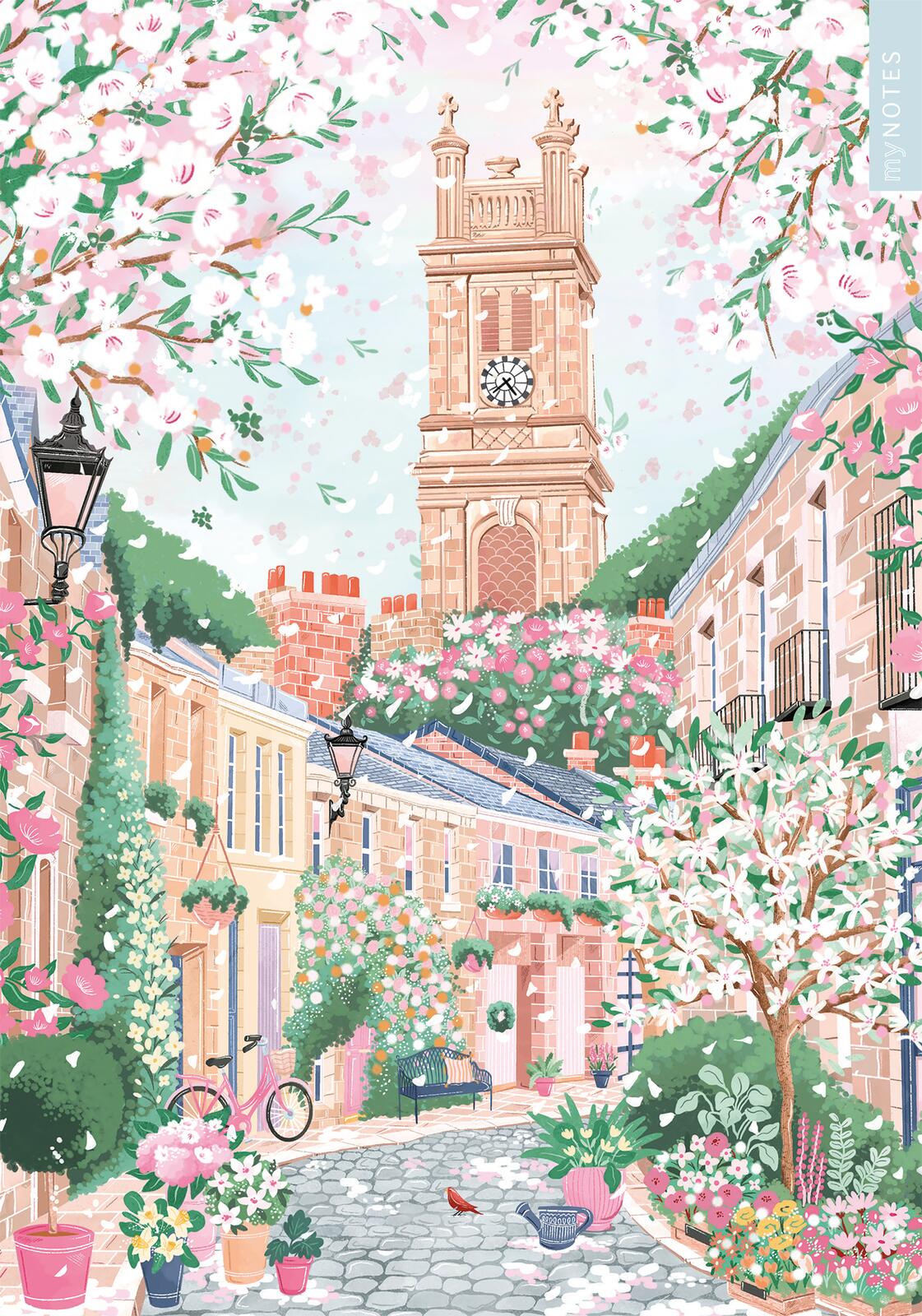 Dieses Notizbuch mit zauberhafter Frühlingsszene der angesagten Künstlerin Simply, Katy entführt dich in eine typisch britische Gasse.