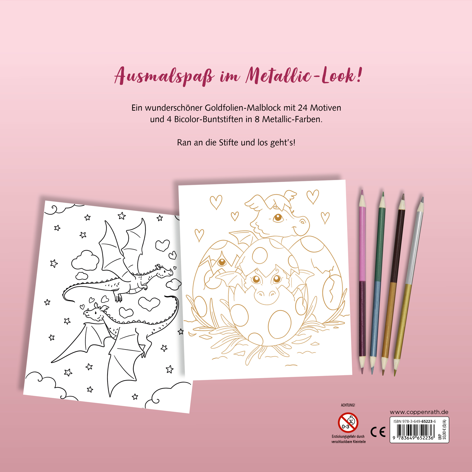 | Schlagworte | Ausmalblock • Ausmalblock mit Stiften • Ausmalen mit Metallic • Besonderes Malbuch mit Bicolorstiften • Duo-Stifte • Geschenkidee Kinder • Malblock Fantasy • Malblock Kinder • Metallic-Buntstifte • Metallic-Outlines |