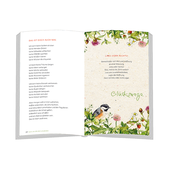 Einfach die Zeit verpfeifen und das Lebensglück genießen. Lauter kleine inspirierende Glücksmomente reihen sich wie an einer Perlenschnur aneinander und zeigen, dass es zum Glück gar nicht viel braucht. Manchmal versteckt es sich sogar in einem kleinenGedicht.
