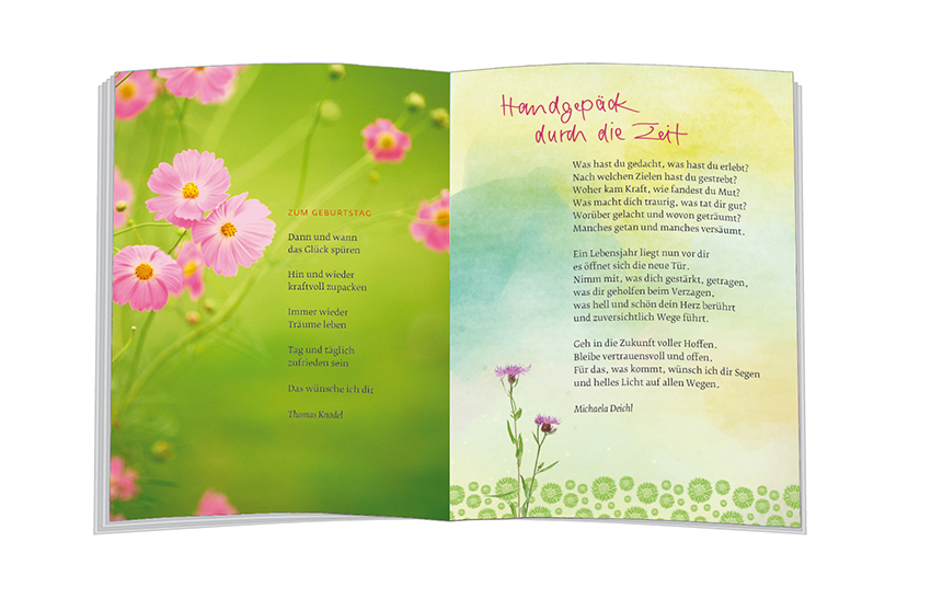 Alles Gute zum neuen Lebensjahr sagen diese wunschvollen Gedichte und Gedanken und schicken herzliche Glückwünsche zum Geburtstag.Mit Texten von Michaela Deichl, Ilka Haederle,Thomas Knodel, Angelika Wolff, u.a.