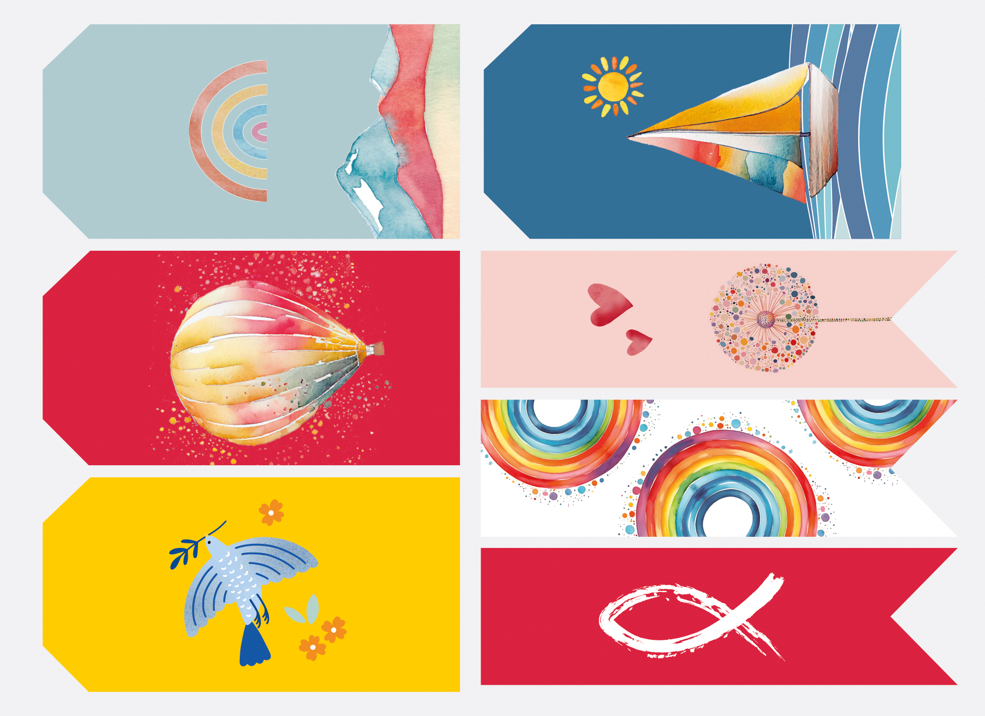 • Mit Motivpapieren, Stickern und Bastelvorlagen