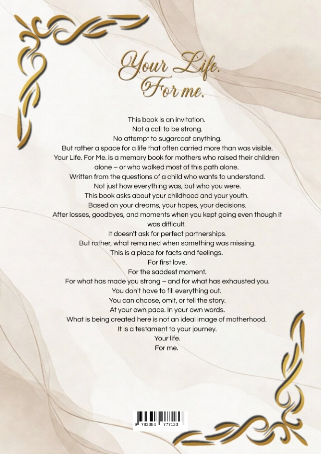 | Schlagworte | gift for single mother memory book • keepsake journal for single moms • life story book for moms • memory book for single mothers • memory book from child to mother • mother child memory journal • mother life story keepsake book • mother memoir guided journal • personal legacy book for mothers • questions to ask your mother book |