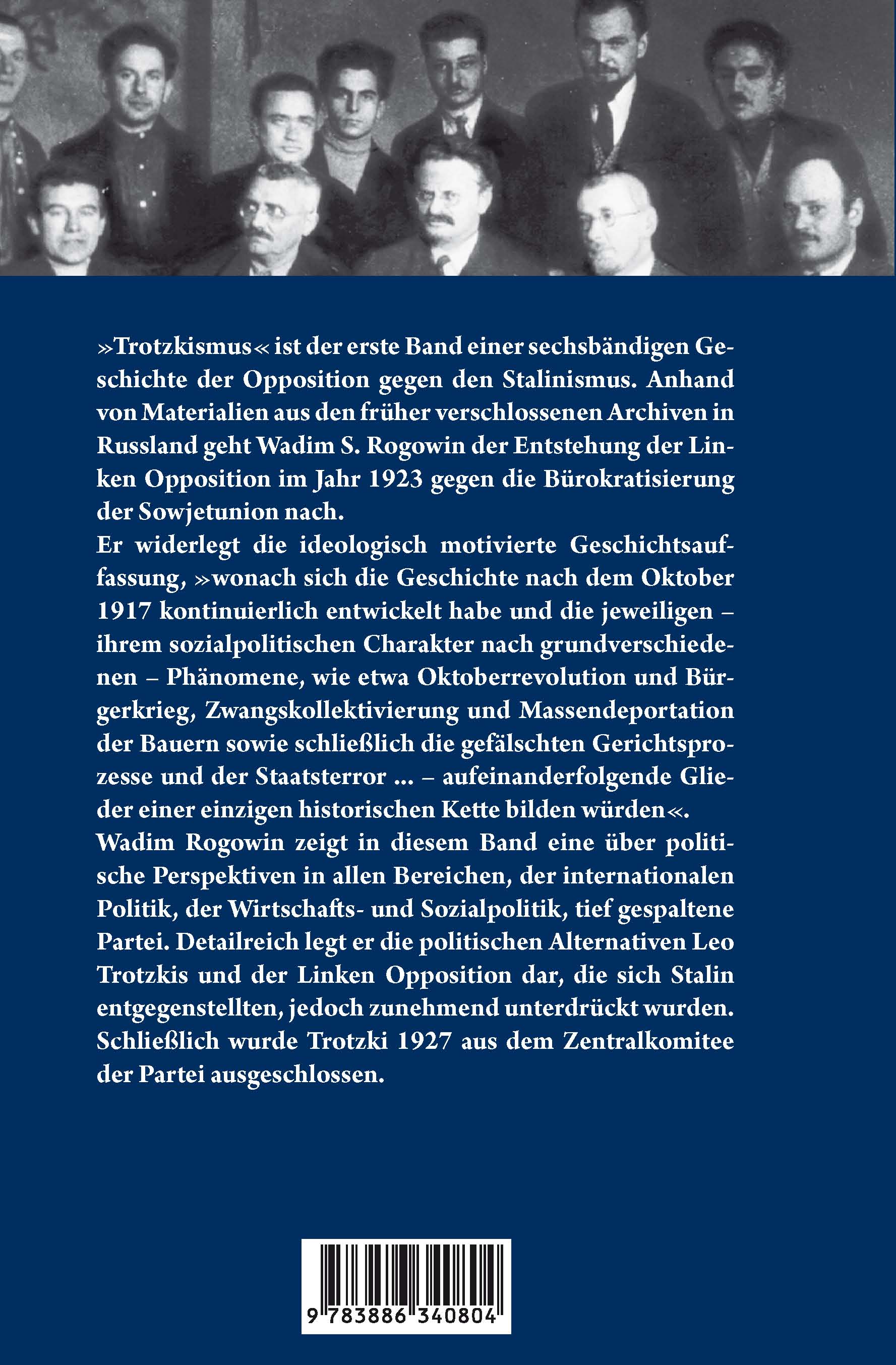 Wadim S. Rogowin ist Doktor der Philosophie und Professor am Soziologischen Institut der Russischen Akademie der Wissenschaften in Moskau. Anlass zu bisweilen heftigen Kontroversen bieten in der Sowjetunion seine umfangreichen Veröffentlichungen zu Problemen der Sozialpolitik, zur Entwicklungsgeschichte des gesellschaftlichen Bewusstseins und zur Geschichte politischer Bewegungen in der UdSSR. Der Linken Opposition gegen den Stalinismus gilt von jeher sein besonderes Interesse. Die Öffnung zuvor geheimer Archive infolge der Auflösung der Sowjetunion ermöglicht ihm die Vervollständigung seiner Forschungen durch eine Fülle neuer Erkenntnisse.