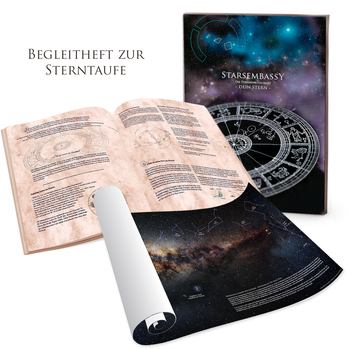 - Illustriertes Begleitheft mit Informationen zur Sterntaufe, Softcover 24-seitig