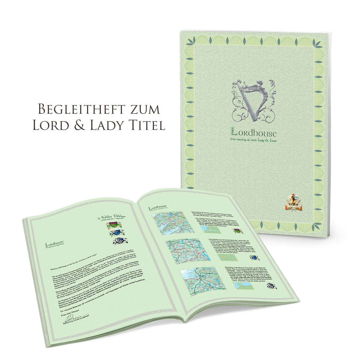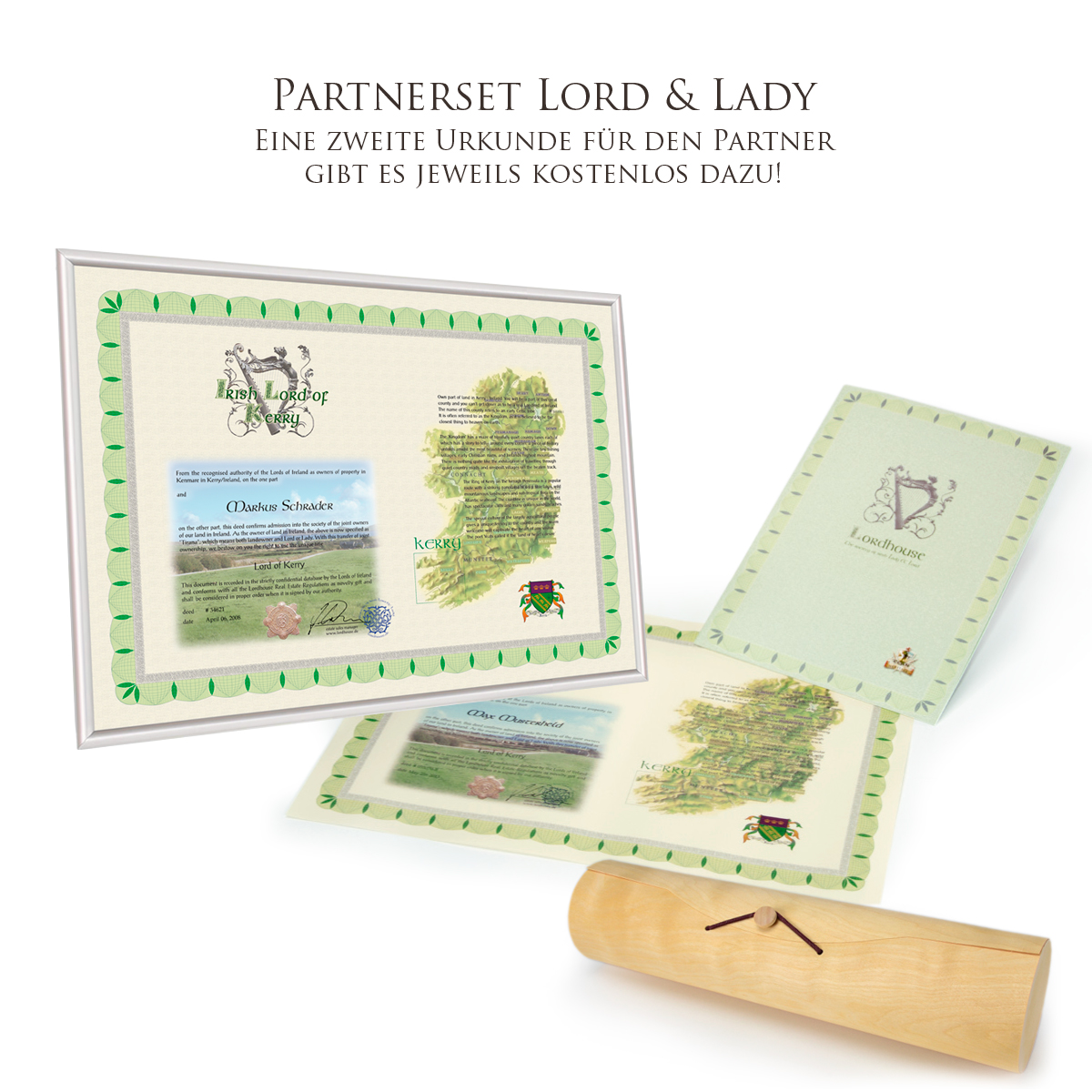 Sie erwerben mit dem Kauf des non-book Artikels "Lordhouse" automatisch auch ein Souvenirgrundstück - in einer der schönsten Regionen Irlands. Damit verbunden ist die Ernennung zum waschechten Irish Lord & Lady z.B. of Kerry. Die schmuckvolle Ernennungsurkunde, die den klangvollen Edel-Titel "Irish Lord oder Lady" verleiht, kann für alle Kunden des Buchhandels kostenfrei unter www.mondland.de mittels einem Code abgerufen werden.