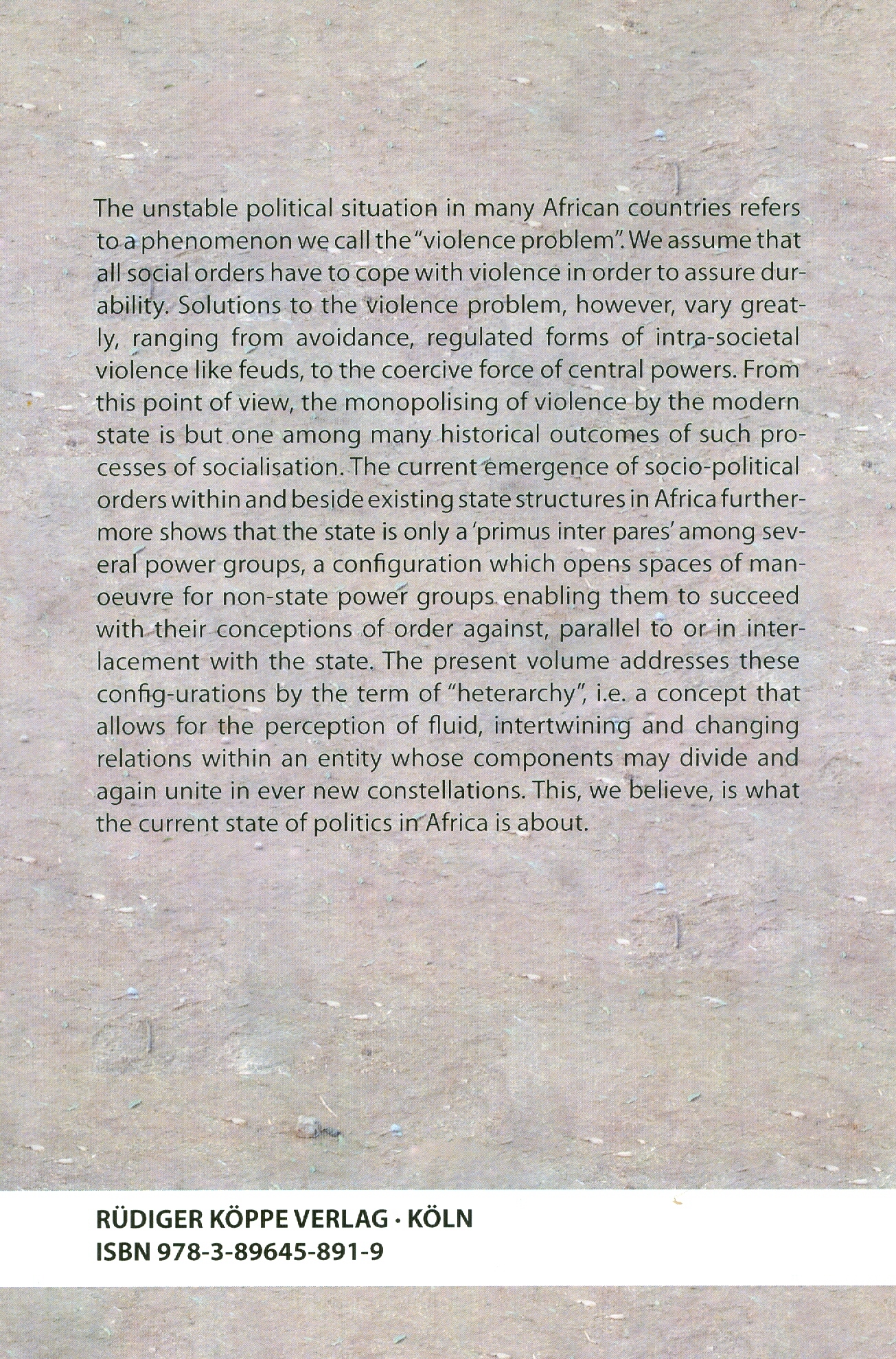 Der vorliegende Band bezeichnet diese Strukturen als „heterarchy“. Dieses Konzept ermöglicht die Wahrnehmung fließender, miteinander verflochtener und wechselnder Beziehungen innerhalb eines Gefüges, dessen Komponenten sich trennen und in immer neuen Konstellationen wieder zusammenfügen können. Dies ist nach Ansicht der Herausgeber der Kernpunkt des aktuellen politischen Status’ in Afrika.