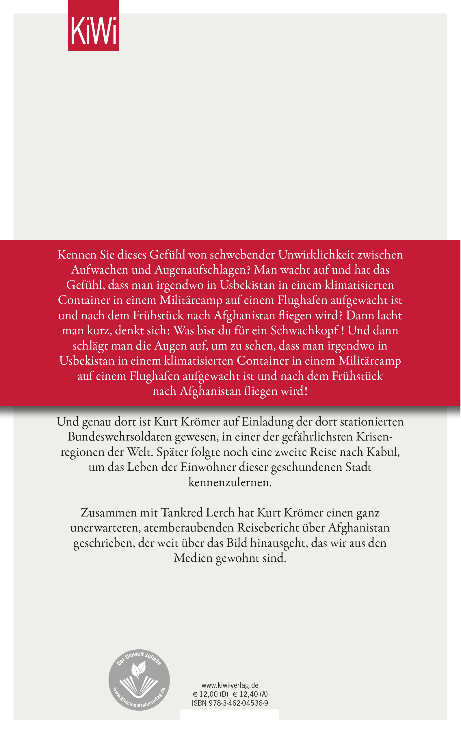 Von dieser Reise in eine der gefährlichsten Krisenzonen der Weltpolitik berichtet Kurt Krömer in seinen Aufzeichnungen - eine Reise, der dann sogar noch eine zweite Reise folgte, um neben dem Alltagsleben der deutschen Soldaten das Leben in der Hauptstadt Kabul kennenzulernen.