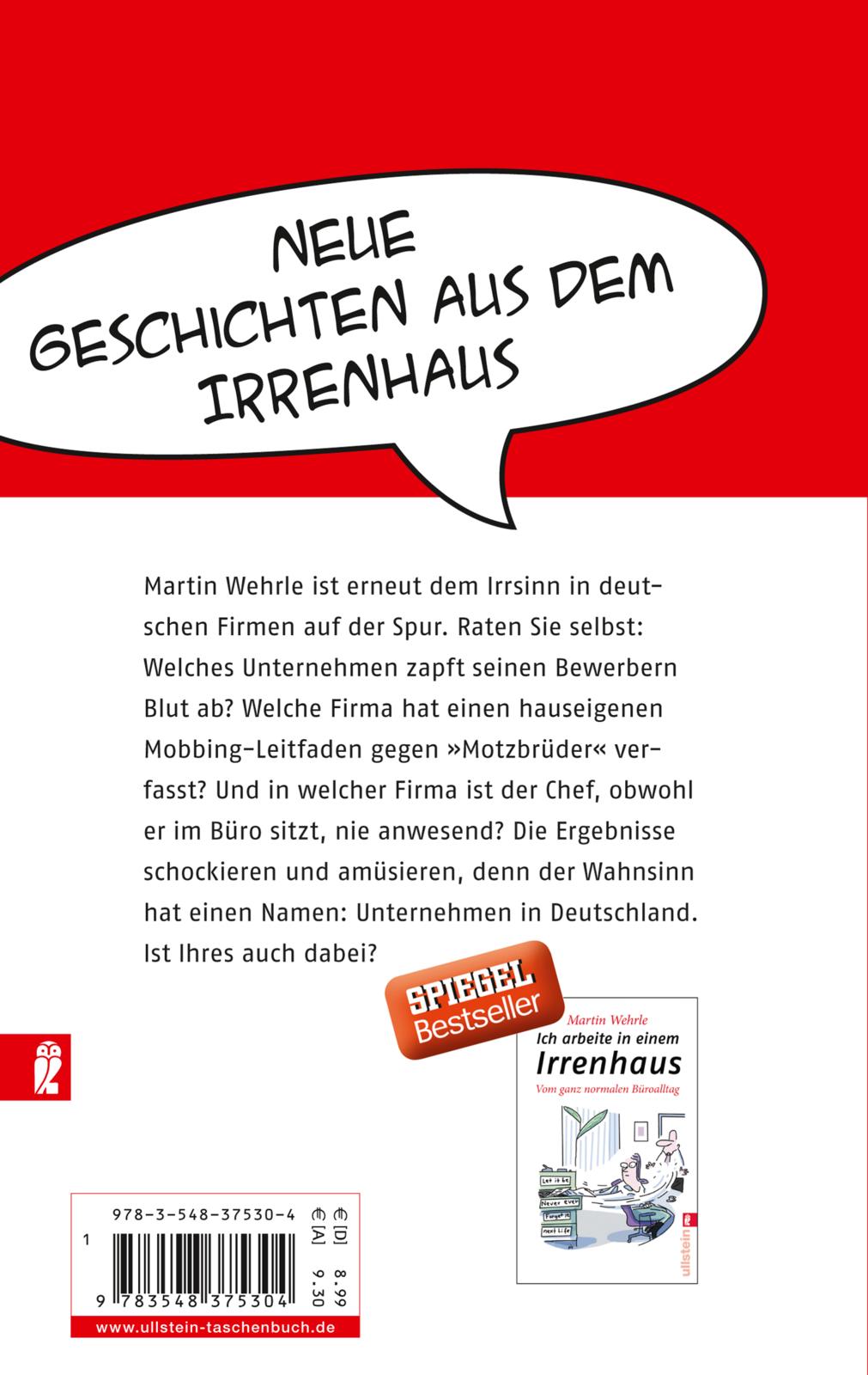 Martin Wehrle ist erneut dem Irrsinn in deutschen Firmen auf der Spur. In deutschen Betrieben herrschen unverändert haarsträubende Zustände: Die eine Firma verheimlicht ihren Mitarbeitern eine Bombendrohung; die nächste verschickt ihre Kündigungen im selben Umschlag wie die Weihnachtspost. Martin Wehrle hat nach Ich arbeite in einem Irrenhaus Tausende von Rückmeldungen bekommen. Der erste Band hat durch einige Schlüssellöcher gelugt - der zweite Band bringt den wahren Irrsinn ans Licht.
