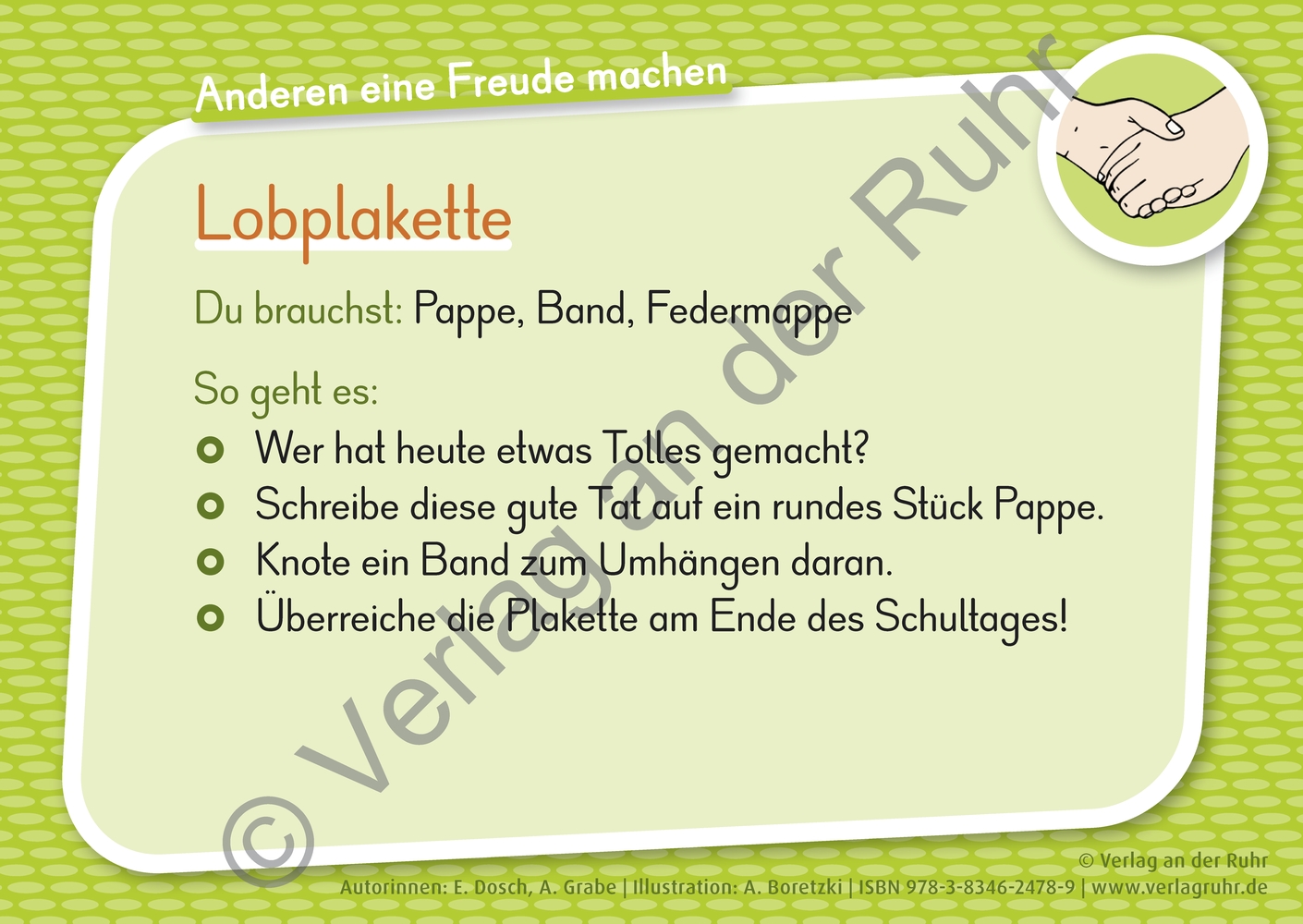 Unterrichtsmaterial: Karteikarten für Lehrer und Lehrerinnen an Grundschule und Förderschule, Fächer: Soziales Lernen und Pädagogik, Klasse 1-4 +++ In der Schule wird nicht nur gemeinsam gelernt, sondern auch zusammen gelebt. Konflikte sind dabei unvermeidlich - und Sie stehen dann vor der Herausfoderung, den Streit zu schlichten und die Kinder zu einem verantwortungsvollen Umgang miteinander anzuregen. Wenn Jonas Sofie "Blöde Kuh!" nennt, können Sie ihn vielleicht überreden, sich zu entschuldigen und sich mit Sofie zu versöhnen, echte Einsicht bleibt allerdings oft aus. Hier setzt die Wiedergutmachungs-Kartei mit 85 Impulskarten für die Hand der Kinder an: Sie macht den Schülern und Schülerinnen konkrete Vorschläge, noch einmal wirklich in sich zu gehen und Verantwortung für ihr Handeln zu übernehmen. Jenseits bloßer Bestrafungen erleben die Kinder die Entschuldigung so als ernst gemeinte, positive Erfahrung - und entschädigen ihr Gegenüber, indem sie Wiedergutmachung leisten. Den wichtigsten Klassenregeln entsprechend, ist die Kartei in sechs Bereiche unterteilt: von "Wir sind höflich und benutzen nette Worte!" über "Wir respektieren fremdes Eigentum!" bis "Wir gehen friedlich miteinander um!". Einmal in Ihrer Klasse eingeführt, können die Schüler und Schülerinnen ganz selbstständig mit den Impulskarten arbeiten. So murmelt Jonas beim nächsten Mal nicht bloß "Entschuldigung!" - sondern bittet Sofie ehrlich um Verzeihung und zaubert ihr mit einer ganzen Komplimenteliste wieder ein Lächeln ins Gesicht.