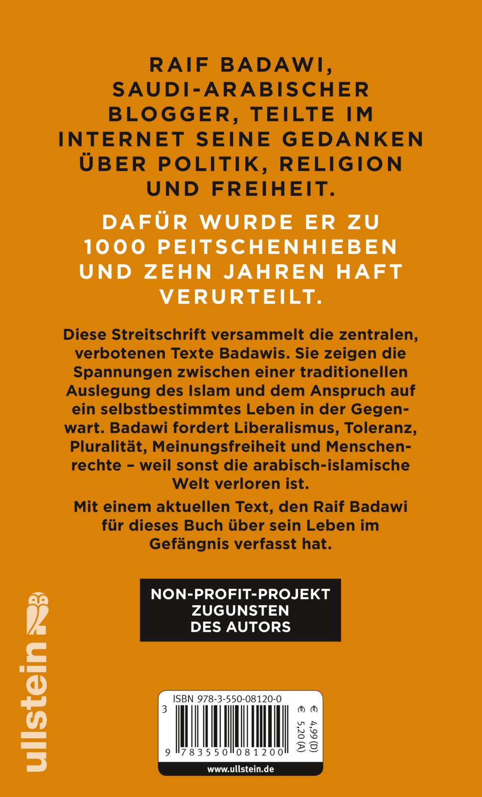 Raif Badawi, saudi-arabischer Blogger, teilte im Internet seine Gedanken über Politik, Religion und Freiheit. Dafür wurde er zu 1000 Peitschenhieben und zehn Jahren Haft verurteilt. Diese Streitschrift versammelt die zentralen, verbotenen Texte Badawis. Sie zeigen die Spannungen zwischen einer traditionellen Auslegung des Islam und dem Anspruch auf ein selbstbestimmtes Leben in der Gegenwart. Badawi fordert Liberalismus, Toleranz, Pluralität, Meinungsfreiheit und Menschenrechte - weil sonst die arabisch-islamische Welt verloren ist. Mit einem aktuellen Text, den Raif Badawi für dieses Buch über sein Leben im Gefängnis verfasst hat.