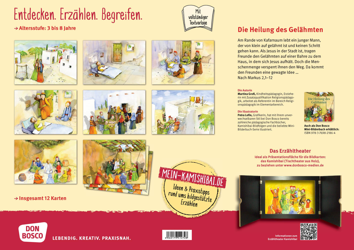 Das Kamishibai-Set zur Heilung des Gelähmten bringt zentrale Werte der Bibelgeschichte in die pädagogische Arbeit: Glaube, Hoffnung und die Kraft von Freundschaft. Ideal für Morgenkreise, Andachten für Kinder oder religionspädagogische Impulse. Ein wertvolles Medium, um Kindern Mut zu machen und Gemeinschaft erlebbar zu machen.
