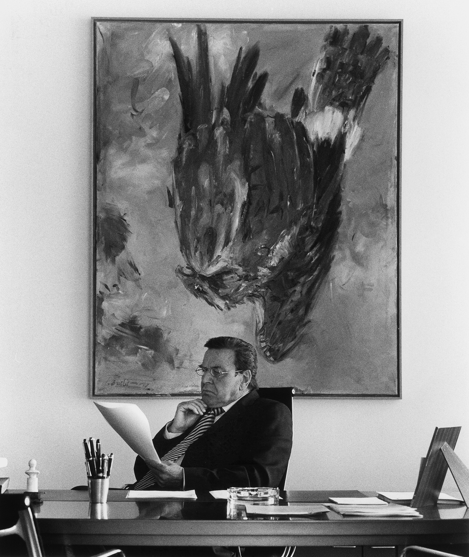 Konrad R.Müller: Erst kam ein Studium der Malerei, danach, im Jahre 1965, entschied sich der damals 25jährige Konrad R. Müller für die Fotografie. Seitdem arbeitet er mit der vom Vater geerbten zweiäugigen Rolleiflex, Baujahr 1935, ohne Kunstlicht, nur in Schwarzweiß. Müller gilt als der beste Porträtist der Kanzler der Bundesrepublik.