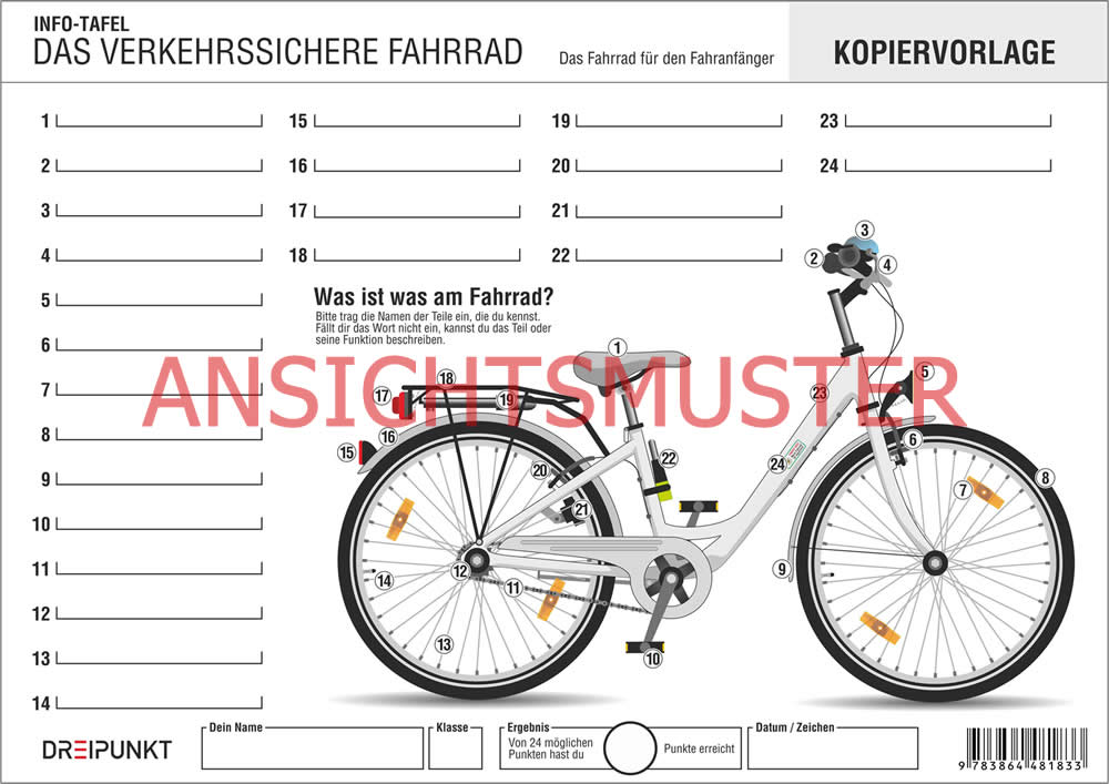 | Schlagworte | Ausbildung • Dreipunkt • Dreipunkt-Verlag • Fahranfänger • Fahren • Fahrrad • Fahrrad; Nonbooks • Grundschule • Grundschule und Sekundarstufe I • Info-Tafel • InfoTafel • Lernen • Vorschule und Kindergarten |