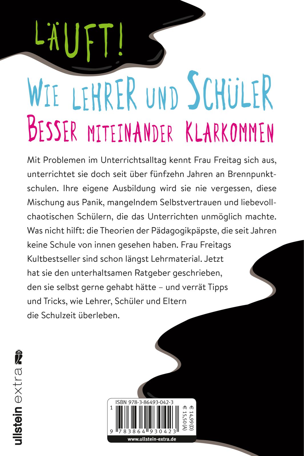 Frau Freitag gibt in ihrem unterhaltsamen Ratgeber Tipps und Tricks, wie Lehrer, Schüler und Eltern den Unterrichtsalltag überleben. Mit Problemen im Schulalltag kennt sie sich aus. Seit über fünfzehn Jahren unterrichtet sie an Brennpunktschulen. Ihre eigene Ausbildung wird Frau Freitag nie vergessen: diese Mischung aus Panik, mangelndem Selbstvertrauen und liebevoll-chaotischen Schülern, die das Unterrichten unmöglich macht. Was nicht hilft: die Theorien der Pädagogikpäpste, die seit Jahren keine Schule mehr von innen gesehen haben. Frau Freitags Kultbestseller sind schon längst Lehrmaterial. Und jetzt hat sie den praxisnahen Ratgeber geschrieben, den sie selbst gerne gehabt hätte.
