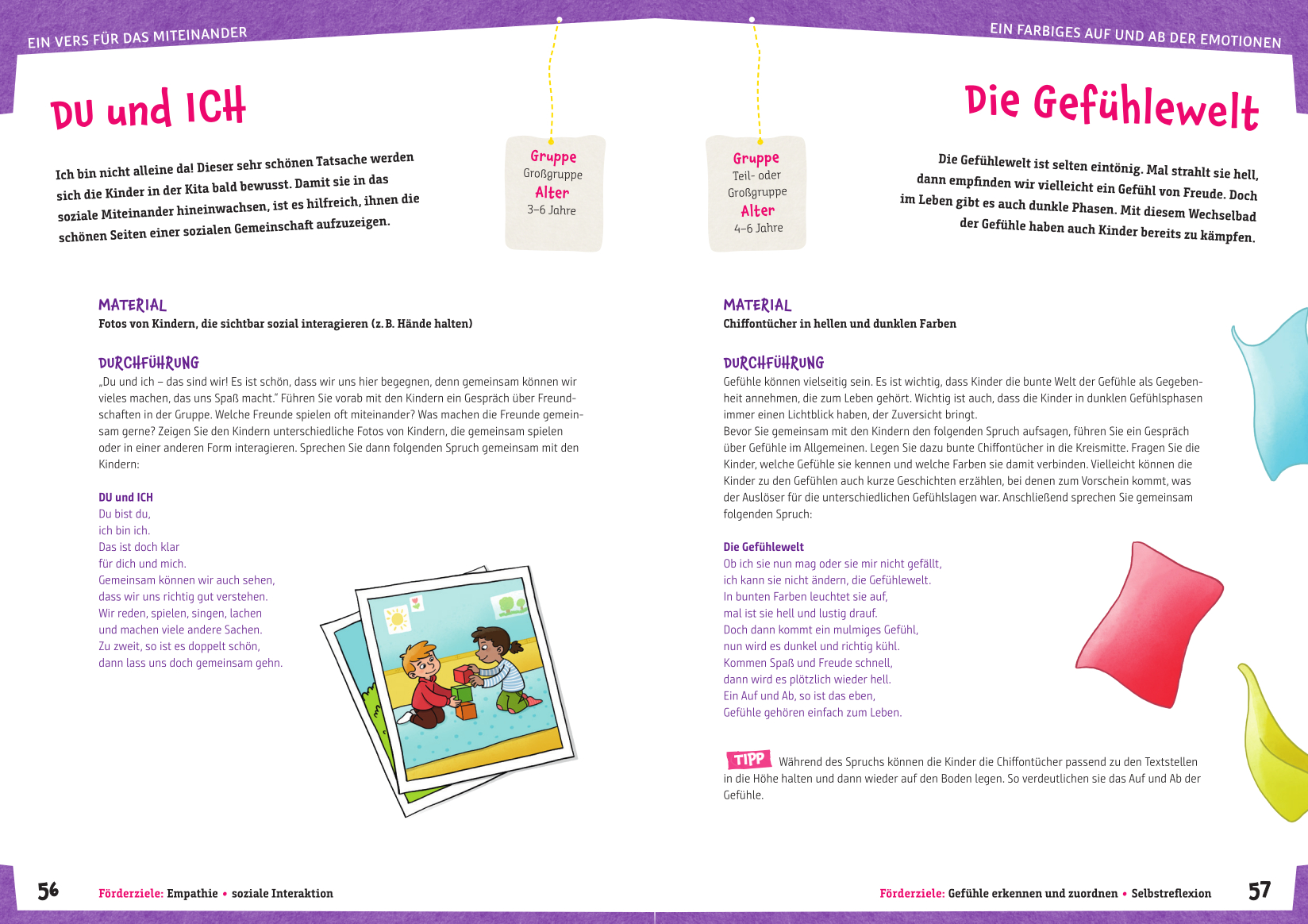 Spannende, abwechslungsreiche und ganzheitliche Spielideen rund um die Förderung von sozial-emotionalen Grundkompetenzen in der Kita. Mit Mitmachgedichten, Malaktionen, Bewegungs- und Wahrnehmungsspielen, Geschichten zur Förderung von Resilienz und vielem mehr. Schnell einsatzbereit und einfach umzusetzen.