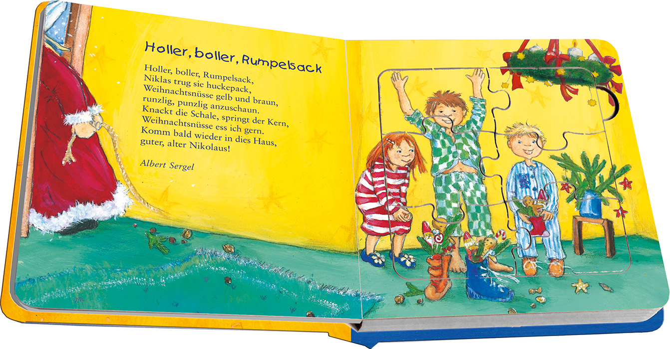 | Schlagworte | Advent • Altersgruppen: Kinder • Bilderbuch • Brauchtum • Gedichte • Geschenk • Glaube • Kinderpuzzles (Nonbooks) • Legenden • Nikolaus • Papp-Bilderbuch • Puzzle • Puzzles (Nonbooks); 30-49 Teile • Religiöses Bilderbuch • Sankt Nikolaus; Sachbilderbuch • Weihnachten |