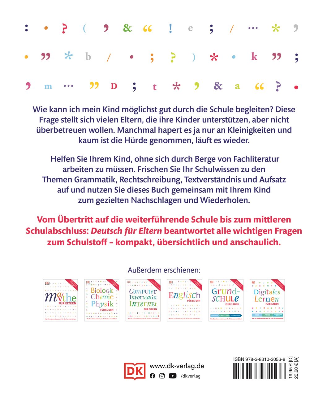 Vom Übertritt auf die weiterführende Schule bis zum mittleren Schulabschluss: "Deutsch für Eltern" beantwortet alle wichtigen Fragen zum Schulstoff - kompakt, übersichtlich und anschaulich mit vielen Beispielen. Es deckt den Unterrichtsstoff der Jahrgangsstufen 4 bis 10 ab und ist in fünf unterschiedliche Teilgebiete gegliedert:
