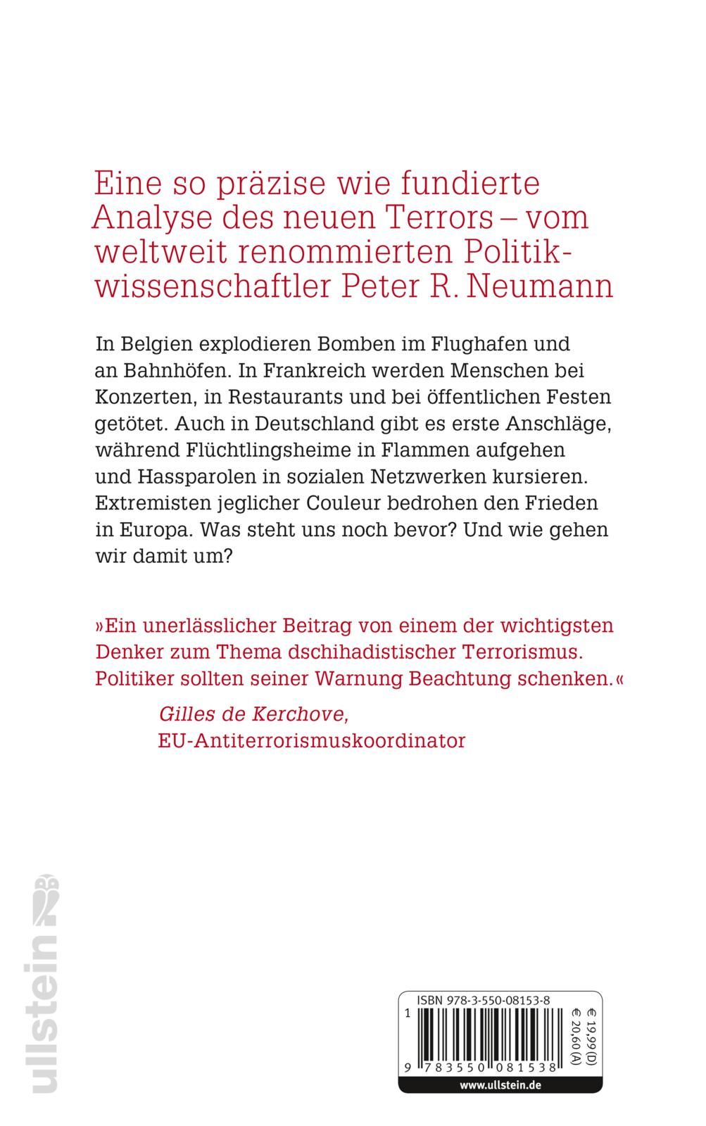 Peter R. Neumann beschäftigt sich seit über zwanzig Jahren mit Terrorismus in all seinen Ausformungen von Separatisten und ethnischen Nationalisten, über Rechts- und Linksextreme bis hin zu Dschihadisten. Das von ihm geleitete International Centre for the Study of Radicalisation (ICSR) setzt sich konkret mit der Frage auseinander, warum sich Menschen radikalisieren. Welche Rolle spielen Herkunft, Ideologie und Umstände? Wie kann Prävention gelingen? Stacheln sich "Neue Dschihadisten" und "Neue Rechte" gegenseitig auf? In seinem fundierten Werk, das auf zwanzig Jahren Forschungsarbeit beruht, erklärt Peter R. Neumann die Gewöhnlichkeit des Terrors. Dabei geht er auf die „hausgemachte“ Radikalisierung ein, die speziell in Europa zu einer zentralen gesellschaftlichen und sicherheitspolitischen Herausforderung geworden ist, mit der wir lernen müssen, umzugehen.