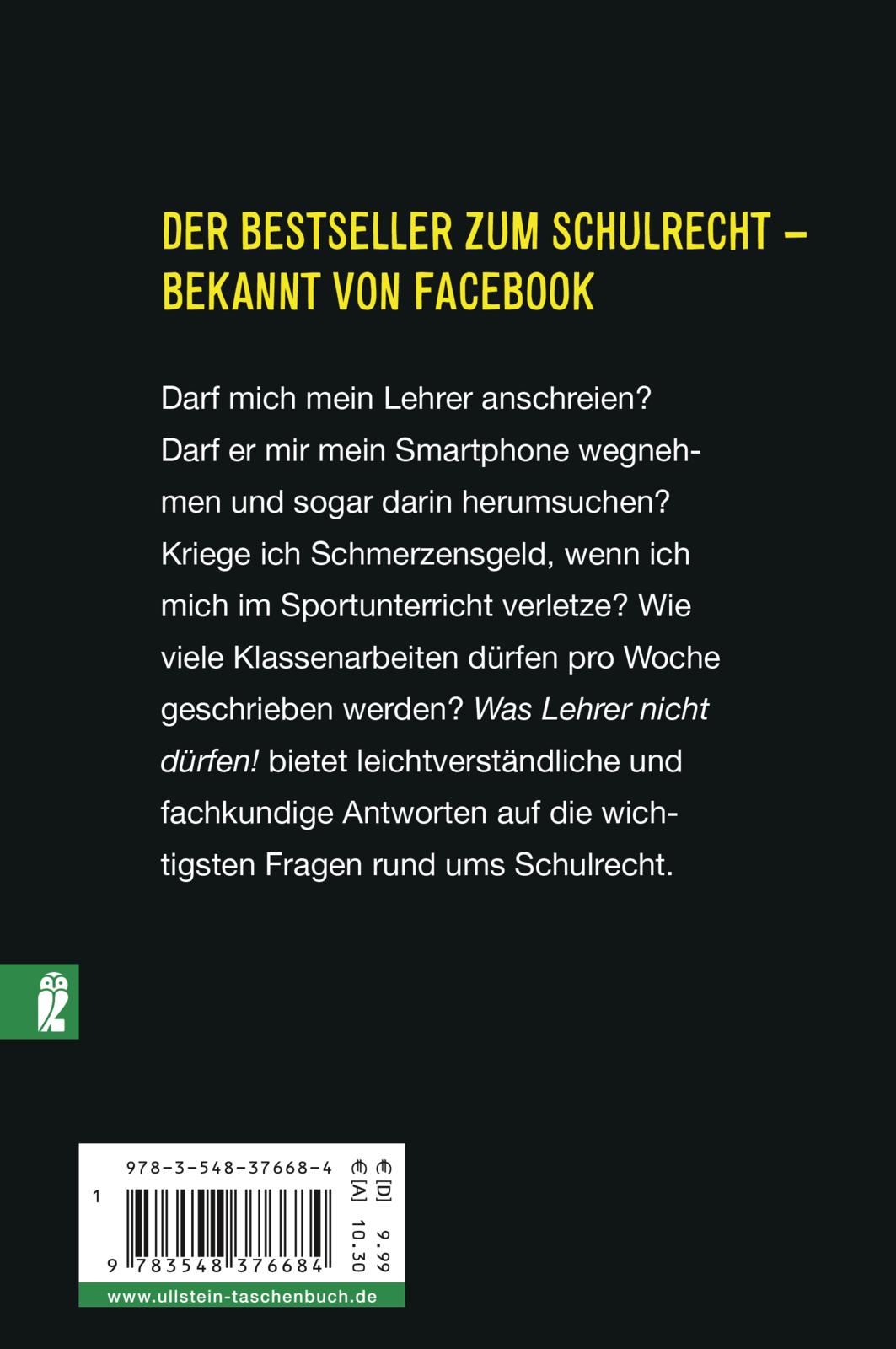 Darf mich mein Lehrer anschreien? Darf er mir mein Smartphone wegnehmen und dann sogar darin herumsuchen? Kriege ich Schmerzensgeld, wenn ich mich im Sportunterricht verletze? Wie viele Klassenarbeiten dürfen pro Woche überhaupt geschrieben werden? Dieses Buch bietet leichtverständliche, fachkundige Antworten auf typische Fragen rund ums Schulrecht. Mit vielen anschaulichen Beispielen und wichtigen Informationen zur Gesetzeslage - rechtzeitig zum Start ins neue Schuljahr