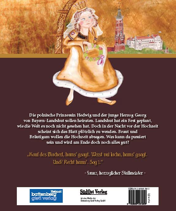 | Schlagworte | Battenberg Gietl Verlag • Bayern • Bayern, Geschichte; Romane/Erzählungen • Belletristik: allgemein und literarisch • Erzählung • Folklore, Mythen und Legenden • Geschichte • Gute-Nacht-Geschichte • Hochzeit • Illustrationen • Jugendbuch • Kinderbuch • Kinder/Jugendliche: Märchen, Sagen, Legenden • Landshut • Landshuter Fürstenhochzeit; Romane/Erzählungen • Landshuter Hochzeit • lustig • Märchen • Märchen / Märchensammlungen; Bayern • Niederbayern • Polen • Prinz • Prinzessin • Südost-Verlag • Vorlesen |