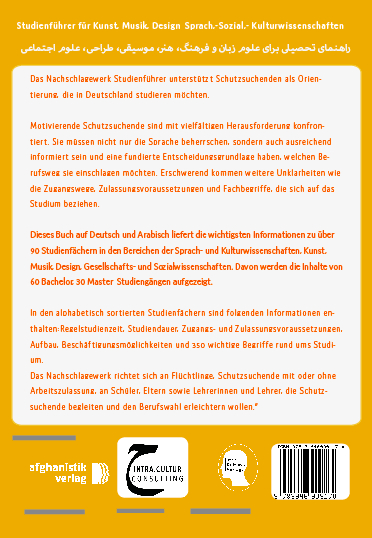 Wichtige Informationen von der Bewerbung bis zum AbschlussÜbersicht der Bachelor-, Master- und dualen Studiengängestudienrelevante Information rund um StudiengängeUni-Lexikon mit 350 Begriffen aus dem UniversitätsalltagWer studieren möchte, soll einen guten Zugang zum Studium haben und mit ausreichenden Informationen ausgestattet sein. Damit Flüchtlinge ein Studium aufnehmen können, benötigen sie eine Orientierung und fachliche Unterstützung.Welche Studienfächer gibt es in Deutschland? Welche Inhalte werden im Bachelor-, Master- und in den dualen Studiengängen gelehrt? Was ist BAföG? Was bedeutet das Wort Curriculum?Dieses Buch auf Deutsch und Persisch liefert die wichtigsten Informationen zu über 60 Studienfächern aus den Bereichen Kunst, Musik, Design, Sprach,- Sozial- und Kulturwissenschaften. Dabei werden die Inhalte von 40 Bachelor-, 10 Master- und 10 dualen Studiengängen aufgezeigt.Die alphabetisch sortierten Studienfächer bieten folgende Informationen: Regelstudienzeit, Studiendauer, Zugangs- und Zulassungsvoraussetzungen, Aufbau, Beschäftigungsmöglichkeiten und 350 wichtige Begriffe rund ums Studium.Das Nachschlagwerk richtet sich an Flüchtlinge, Schutzsuchende mit oder ohne Arbeitserlaubnis, an Schüler, Eltern sowie Lehrerinnen und Lehrer, die Schutzsuchende begleiten und sie bei der Studienwahl unterstützen.