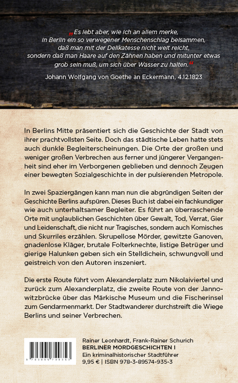 | Schlagworte | Berlin • Berlin-Mitte, Geschichte; Führer • Kriminalgeschichte • Kriminalistik • Spaziergang • Städte, Stadtgemeinden • Stadtführer • Stadtgeschichte • True Crime / Kriminalfälle • Verbrechen und Kriminologie (Kriminalistik) |