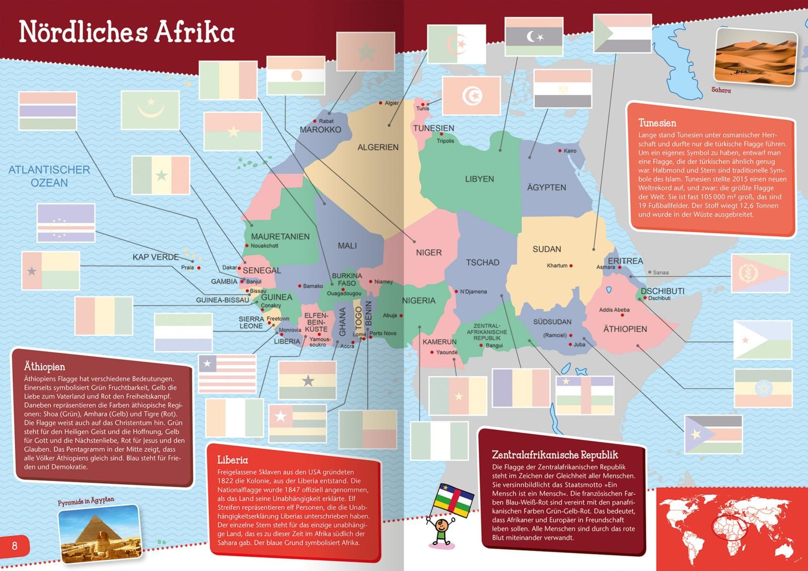 Kennst du die Flagge von Tuvalu, Nepal oder Montenegro? Finde heraus, welche Flagge zu welchem Land gehört. Mit über 200 Stickern kann man auf den Landkarten zu jedem Staat die passende Flagge einkleben. Zusätzlich gibt es jede Menge Infos zu den Flaggen und ein Extrakapitel zu Deutschland und den Flaggen der Bundesländer.