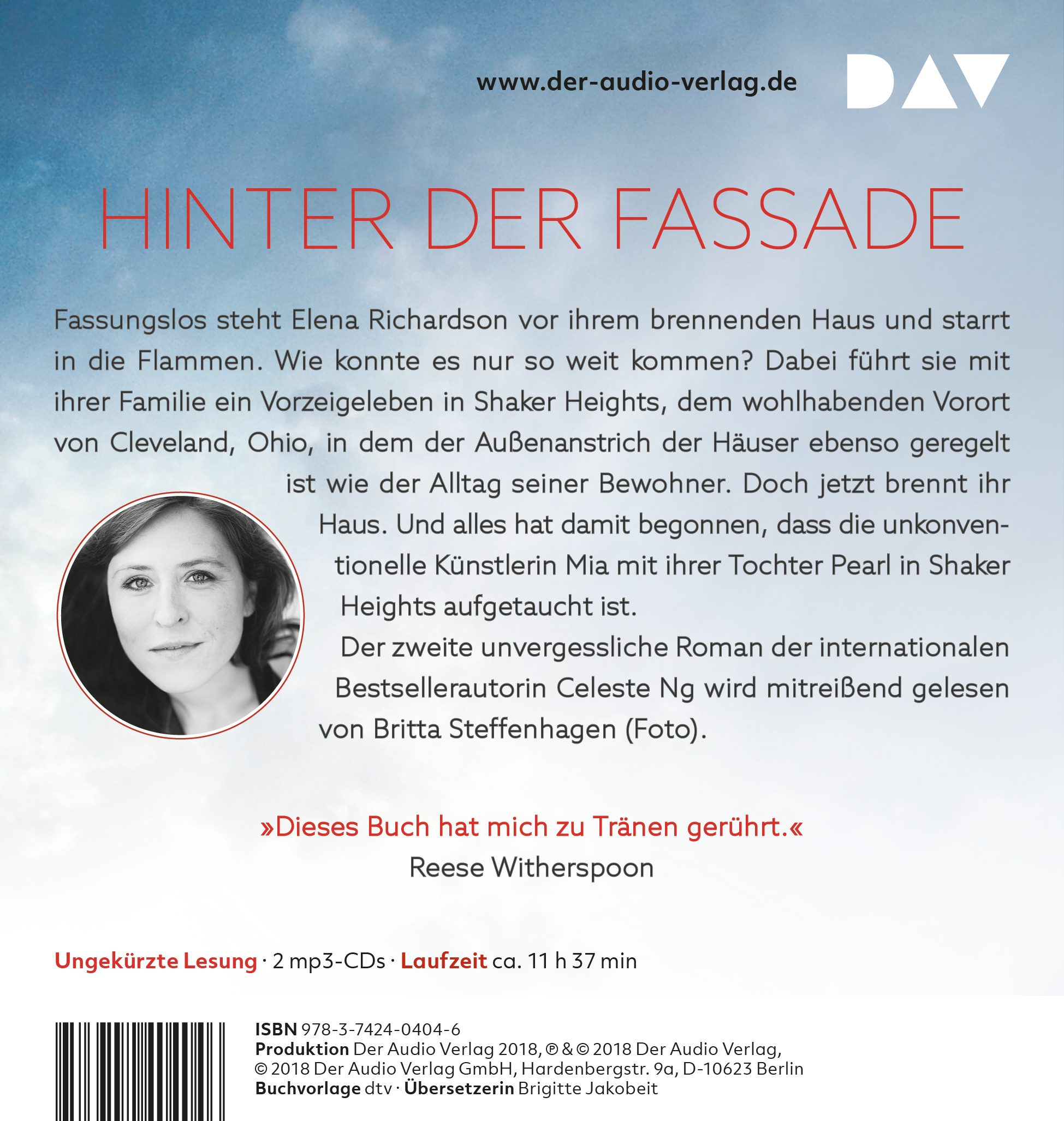 Britta Steffenhagen, geboren 1976 in Berlin, arbeitet als Moderatorin und Redakteurin in Rundfunk und Fernsehen (u.a. für den rbb und radioeins). Sie ist als Schauspielerin, Synchron- und Hörbuchsprecherin tätig. Für DAV hat sie zuletzt »Was ich euch nicht erzählte« von Celeste Ng und »Blutroter Tod« von Tetsuya Honda eingelesen.
