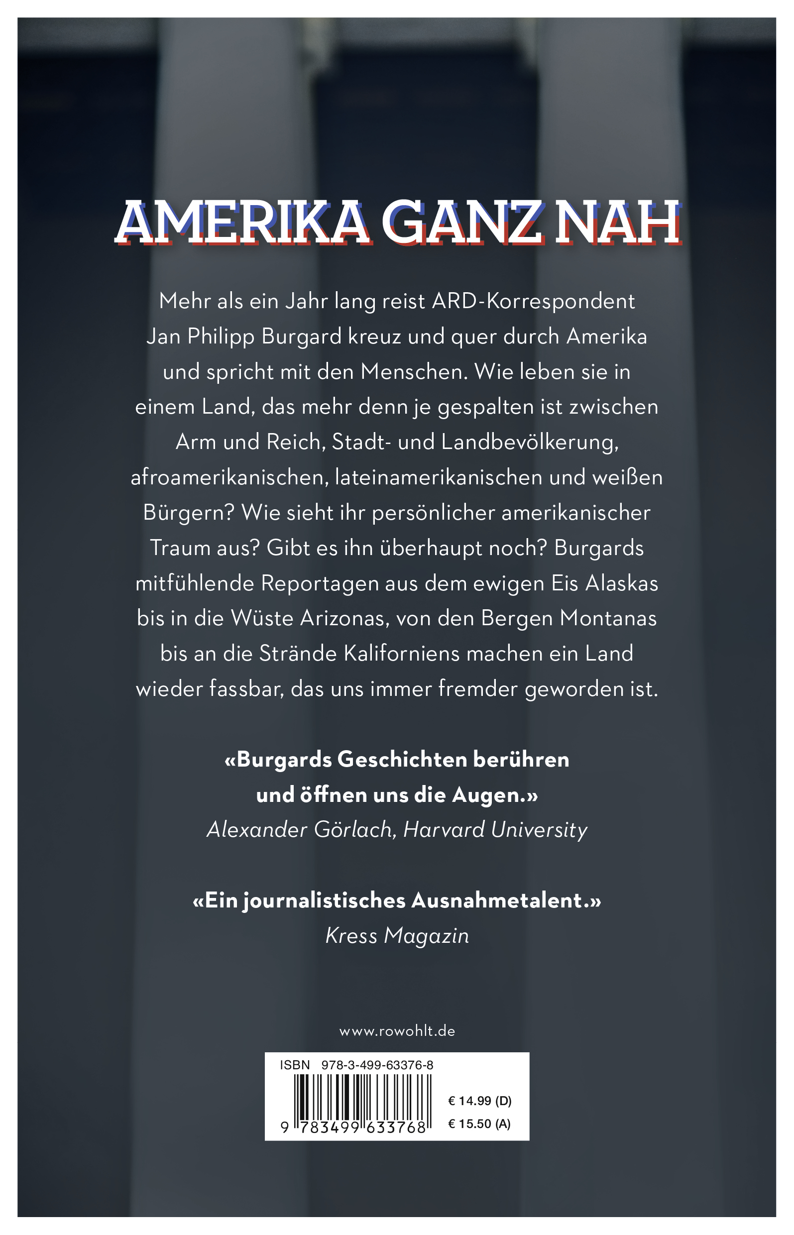 Ist der amerikanische Traum ausgeträumt, oder gibt es ihn noch irgendwo? Burgards mitfühlende Reportagen aus dem ewigen Eis Alaskas bis in die Wüste Arizonas, von den Bergen Montanas bis an die Strände Kaliforniens machen ein Land wieder fassbar, das uns immer fremder geworden ist.