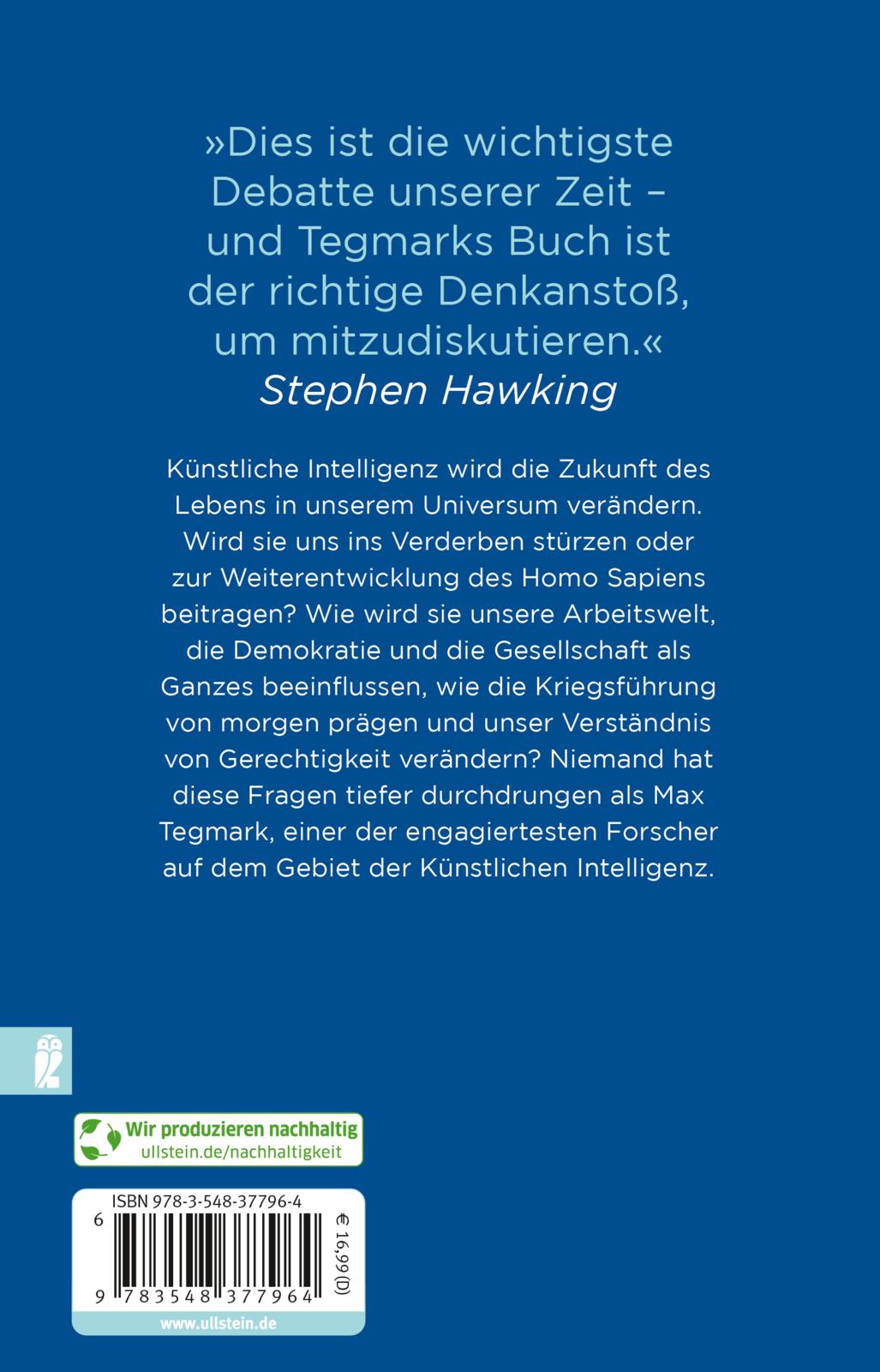 Künstliche Intelligenz wird die Zukunft des Lebens in unserem Universum verändern. Wird sie uns ins Verderben stürzen oder zur Weiterentwicklung des Homo Sapiens beitragen? Wie wird sie unsere Arbeitswelt, die Demokratie und die Gesellschaft als Ganzes beeinflussen, wie die Kriegsführung von morgen prägen und unser Verständnis von Gerechtigkeit verändern? Werden wir intelligente Maschinen kontrollieren - oder werden sie uns kontrollieren? Was bleibt vom Menschen, wenn er Maschinen entwickelt, die die Macht übernehmen und sich der Menschheit entledigen könnten? Niemand hat diese Fragen tiefer durchdrungen als Max Tegmark, einer der engagiertesten Forscher auf dem Gebiet der Künstlichen Intelligenz.