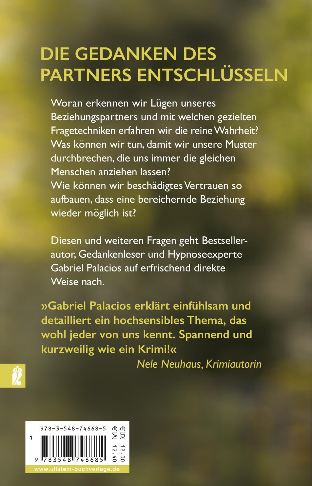 «Dieses Buch ist eine Hilfe für alle, die schon immer wissen wollten, was der Partner überhaupt denkt. Es hilft uns, Lügen zu entlarven und mittels der richtigen Fragetechnik Geheimnisse zu enthüllen.» Gabriel Palacios