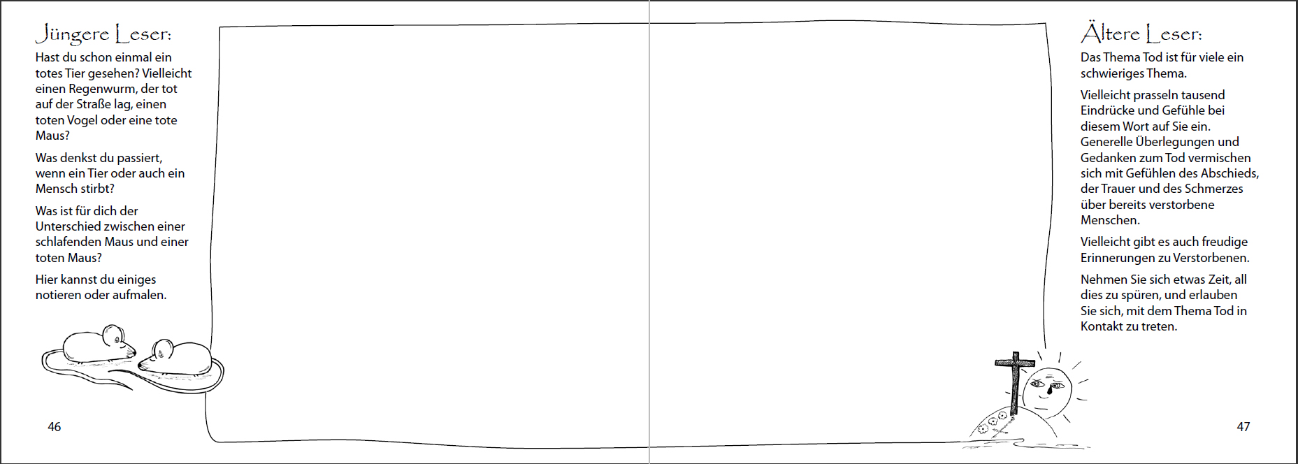 | Schlagworte | Abschied • Ängste • Angst vor dem Sterben • Angst vor dem Tod • Beschützen • Bilderbuch • Glauben • Hauskrankenpflege • Hilfe • Hoffnung • Hoffnungsträger • Hoffnungsvoll • Hospiz • Intensivstation • Kinder • Kinderbuch • Kinderhospiz • Kindertrauer • Krankheit • Krebs • Leben • Nach dem Tod • Palliativ • Palliativmedizin • Palliativpflege • Palliativstation • Religion • Religiös • Schutz • Seele • Seelenfrieden • Sterben • Sterbenskrank • Therapie • Tod • Todesangst • Verlust • Weiterleben • Wiedergeburt |