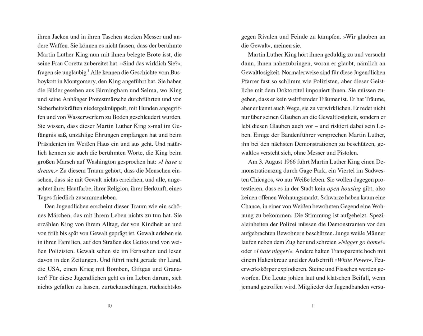 "Ausführliche und anregende Darstellung vom Leben Kings, seines Weltbildes und einer bestürzenden Zeit, die noch nicht lange zurück liegt. Ein beeindruckendes und lehrreiches Buch, gerade in unserer heutigen Gesellschaft, die sich immer öfter mit dem vermeintlich Fremden konfrontiert sieht."