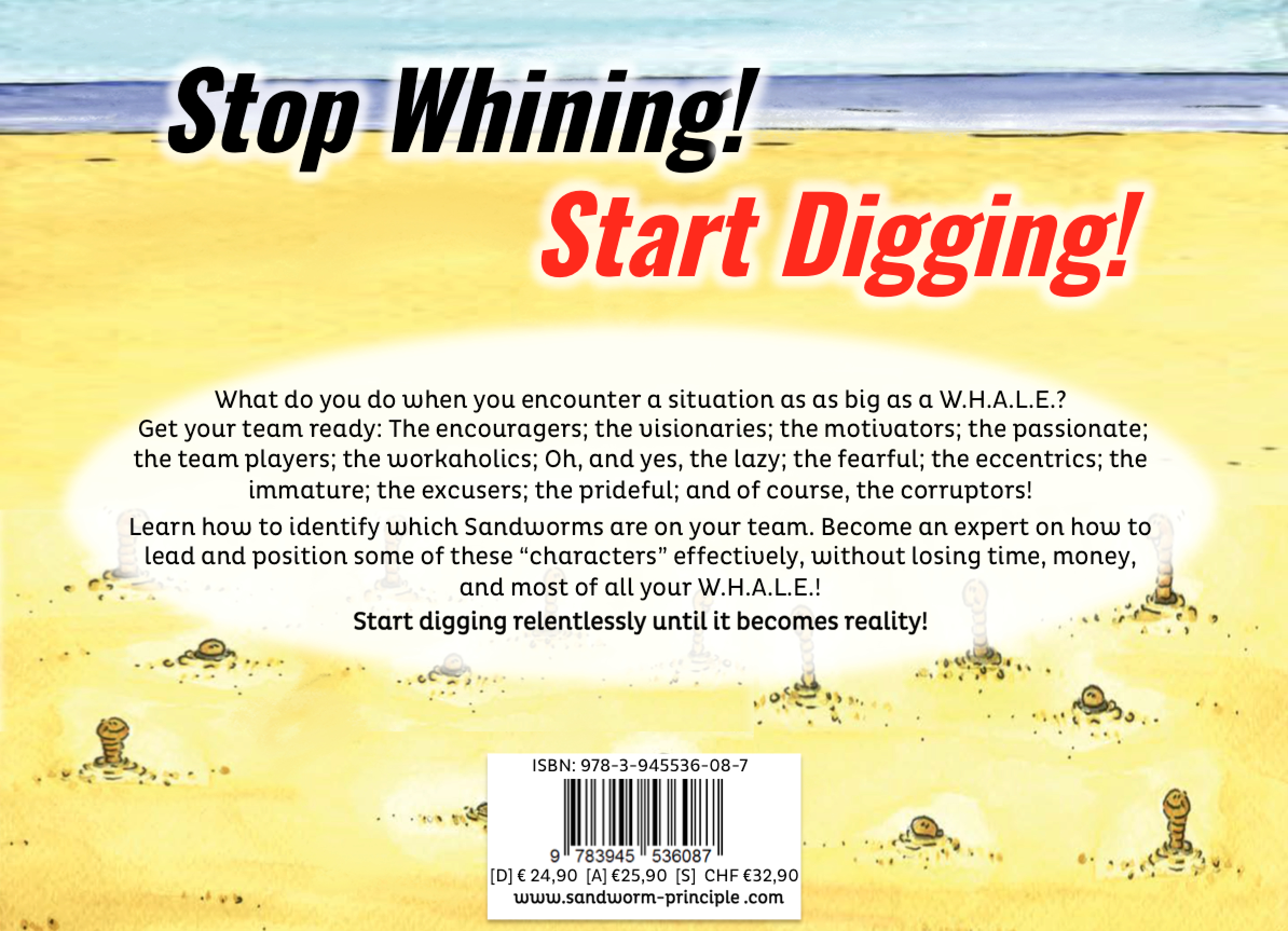 STOP WHINING! START DIGGING! What do you do when you encounter a situation as as big as a W.H.A.L.E.? Get your team ready: The encouragers, the visionaries, the motivators, the passionate, the team players, the workaholics; oh, and yes, the lazy, the fearful, the eccentrics, the immature, the excusers, the prideful and of course, the corruptors!Learn how to identify which Sandworms are on your team. Become an expert on how to lead and position some "characters" effectively, without losing time, money and most of all your W.H.A.L.E.!Start digging relentlessly until it becomes reality!