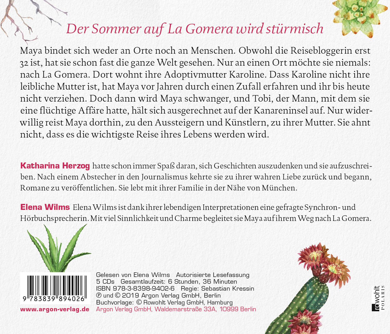 Maya bindet sich weder an Orte noch an Menschen. Obwohl die Reisebloggerin erst 32 ist, hat sie schon fast die ganze Welt gesehen. Nur an einen Ort möchte sie niemals: nach La Gomera. Dort wohnt ihre Adoptivmutter Karoline. Dass Karoline nicht ihre leibliche Mutter ist, hat Maya vor Jahren durch einen Zufall erfahren und ihr bis heute nicht verziehen. Doch dann wird Maya schwanger, und Tobi, der Mann, mit dem sie eine flüchtige Affäre hatte, hält sich ausgerechnet auf der Kanareninsel auf. Nur widerwillig reist Maya dorthin, zu den Aussteigern und Künstlern, zu ihrer Mutter. Sie ahnt nicht, dass es die wichtigste Reise ihres Lebens werden wird.