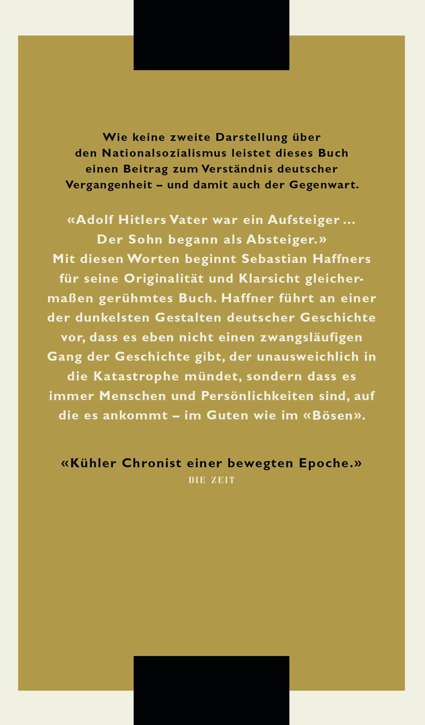 Bis heute hat dieses zuerst 1978 erschienene Buch nichts von seiner Bedeutung verloren. Wie keine zweite Darstellung über den Nationalsozialismus leisten die "Anmerkungen zu Hitler" einen wesentlichen Beitrag zum Verständnis deutscher Vergangenheit - und damit auch der Gegenwart. Seinen Autor hat dieses Buch auf einen Schlag weltberühmt gemacht. Haffners führt an einer der dunkelsten Gestalten deutscher Geschichte vor, dass es eben nicht einen zwangsläufigen Gang der Geschichte gibt, der unausweichlich in die Katastrophe führt, sondern dass es Menschen und Persönlichkeiten sind, die den Gang der Geschichte beeinflussen und auf die es ankommt.