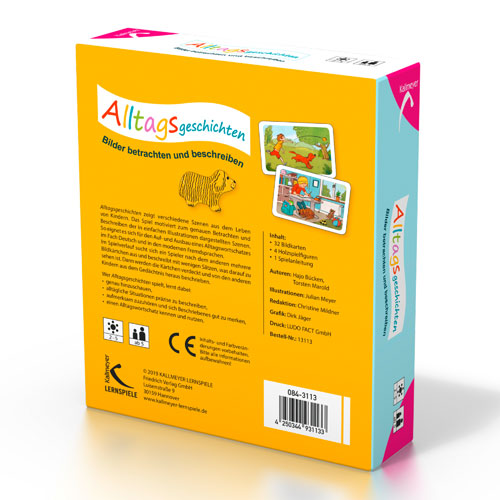 Alltagsgeschichten ist ein kurzweiliges Gedächtnis- und Beschreibungsspiel für 2 - 5 Spielende ab 5 Jahren.