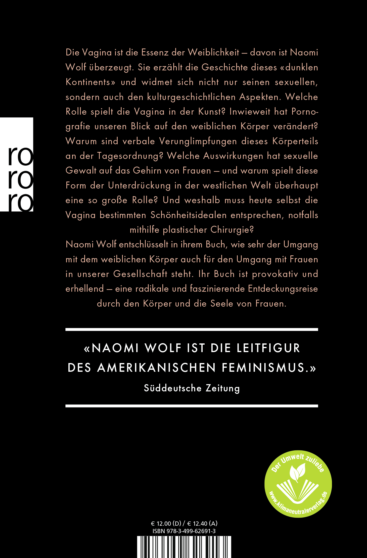 Eine radikale und faszinierende Entdeckungsreise durch den Körper und die Seele von Frauen - von der Leitfigur des amerikanischen Feminismus. Die Vagina ist die Essenz der Weiblichkeit, davon ist Naomi Wolf überzeugt. Sie widmet sich nicht nur ihren sexuellen, sondern auch den kulturgeschichtlichen Aspekten. Welche Rolle spielt die Vagina in der Kunst? Inwieweit hat Pornografie unseren Blick auf den weiblichen Körper verändert? Welche Auswirkungen hat sexuelle Gewalt auf das Gehirn von Frauen? Weshalb muss heute die Vagina bestimmten Schönheitsidealen entsprechen? Naomi Wolf entschlüsselt, wie sehr der Umgang mit dem weiblichen Körper auch für den Umgang mit Frauen in unserer Gesellschaft steht.