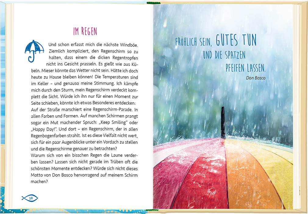 - Orte, an denen du dir und Gott begegnen kannst- Orte im Alltag, die dazu einladen, über sich, das Leben und über Gott nachzudenken- Pausen im hektischen Alltag, z. B. Parkplatz, Kino, Brücke, Sternenhimmel, Seeufer, Heimweg, Fußgängerzone, Supermarkt