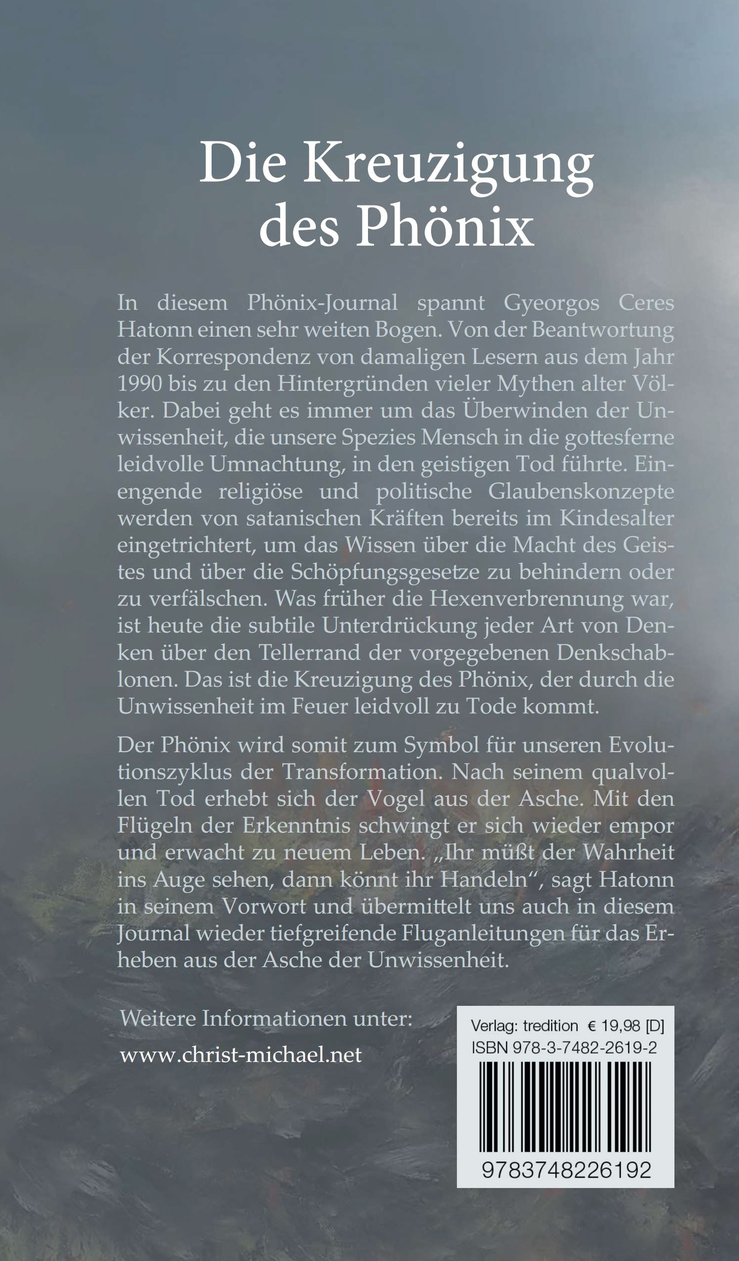 Der Autor dieses Journals, Gyeorgos Ceres Hatonn, zeichnet als die höchste Autorität unter den Autoren der Phönix-Journale. Seine sowie auch alle anderen Beiträge wurden in den 80er und 90er Jahren in englischer Sprache über radioähnliche Kurzwellen direkt an Doris Ekker - alias „Dharma“ - übermittelt. Somit sind die besonders in der Esoterik- und New Age-Scene kursierenden „Channelings“ mit gleichen Namen allesamt Fälschungen, die uns buchstäblich „hinter‘s Licht“ führen. Hatonn spricht Klartext, nennt die Dinge beim Namen. Er neigt dazu, sehr direkt zu sein und seine Information unverblümt und unorthodox auszusprechen – bisweilen sogar umgangssprachlich und kumpelhaft, dann wieder gefolgt von kompromisslosen Ansagen aus der Perspektive eines universellen Schöpfersohnes. Als solcher hat er in 2005 seine vollständige Identität offenbart, nämlich als der zurückgekehrte Christus Michael Aton von Nebadon - diesmal nicht mit „Nachthemd und Jesuslatschen“, sondern in aktueller materieller Ausführung, als universeller Anführer. Einerseits schockierend mit vielen faktisch begründeten Enthüllungen, andererseits herzerwärmend wie ein fürsorglicher Vater, führt er den Leser in diesem Journal in die Welt skrupelloser Machenschaften einer Medizin, die nicht daran interessiert ist, daß wir vollkommen gesund sind. Das alles ist schockierend, aber auch heilsam und schützend. Denn nur durch das Erkennen der Fallstricke der „unheiligen Allianz“ können wir uns und unsere Kinder aus den gefährlichen Täuschungen befreien und alternative Wege der Heilung finden, wozu Hatonn auch viele Tipps und Hinweise gibt. Mit gutem Grund widmet er dieses Journal den vielen ganzheitlichen Ärzten und Heilpraktikern, denen „von den medizinischen Gesellschaften und der Verschwörung der Priester in den Todestempeln übel mitgespielt wird“ so Hatonn.
