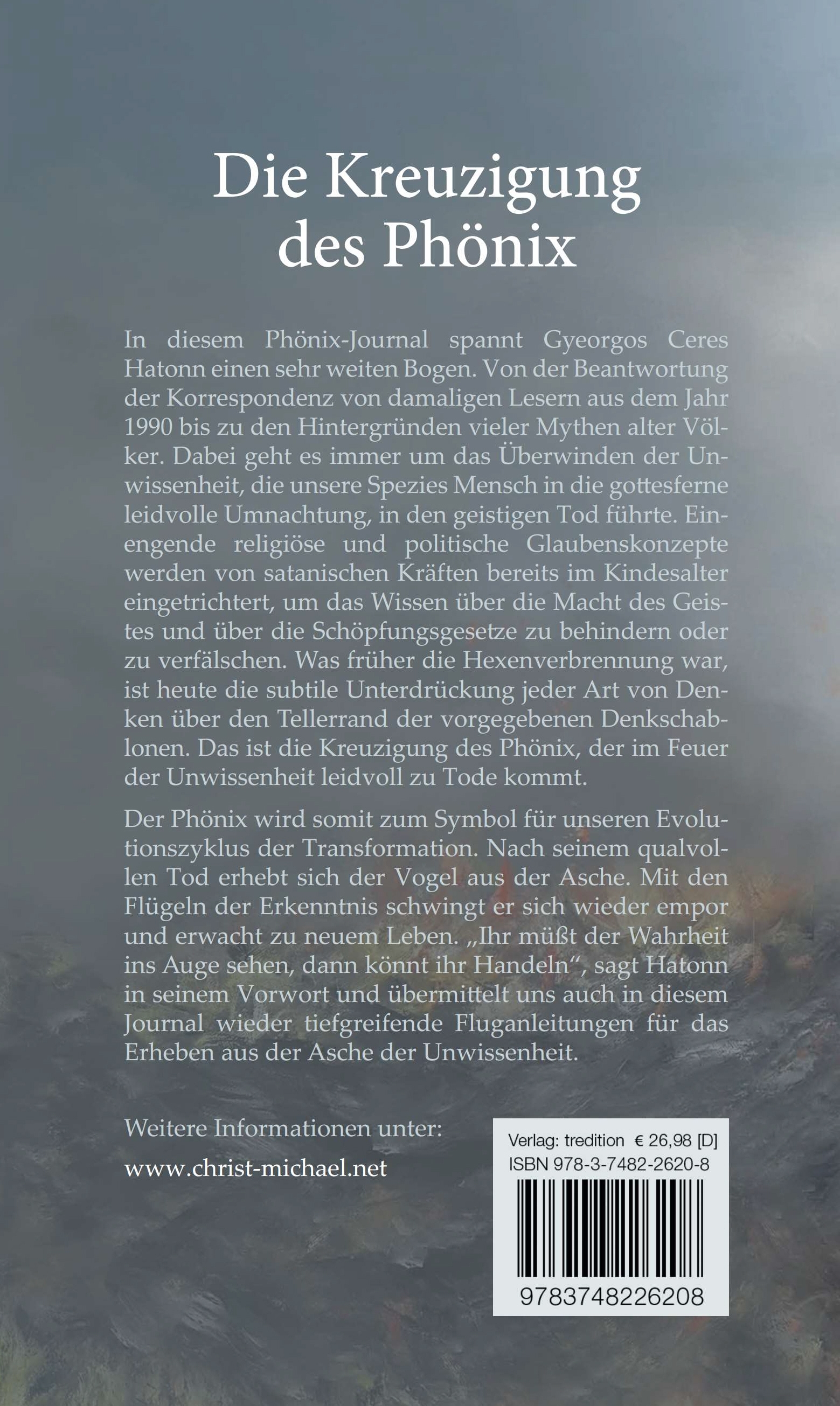 Der Autor dieses Journals, Gyeorgos Ceres Hatonn, zeichnet als die höchste Autorität unter den Autoren der Phönix-Journale. Seine sowie auch alle anderen Beiträge wurden in den 80er und 90er Jahren in englischer Sprache über radioähnliche Kurzwellen direkt an Doris Ekker - alias „Dharma“ - übermittelt. Somit sind die besonders in der Esoterik- und New Age-Scene kursierenden „Channelings“ mit gleichen Namen allesamt Fälschungen, die uns buchstäblich „hinter‘s Licht“ führen. Hatonn spricht Klartext, nennt die Dinge beim Namen. Er neigt dazu, sehr direkt zu sein und seine Information unverblümt und unorthodox auszusprechen – bisweilen sogar umgangssprachlich und kumpelhaft, dann wieder gefolgt von kompromisslosen Ansagen aus der Perspektive eines universellen Schöpfersohnes. Als solcher hat er in 2005 seine vollständige Identität offenbart, nämlich als der zurückgekehrte Christus Michael Aton von Nebadon - diesmal nicht mit „Nachthemd und Jesuslatschen“, sondern in aktueller materieller Ausführung, als universeller Anführer. Einerseits schockierend mit vielen faktisch begründeten Enthüllungen, andererseits herzerwärmend wie ein fürsorglicher Vater, führt er den Leser in diesem Journal in die Welt skrupelloser Machenschaften einer Medizin, die nicht daran interessiert ist, daß wir vollkommen gesund sind. Das alles ist schockierend, aber auch heilsam und schützend. Denn nur durch das Erkennen der Fallstricke der „unheiligen Allianz“ können wir uns und unsere Kinder aus den gefährlichen Täuschungen befreien und alternative Wege der Heilung finden, wozu Hatonn auch viele Tipps und Hinweise gibt. Mit gutem Grund widmet er dieses Journal den vielen ganzheitlichen Ärzten und Heilpraktikern, denen „von den medizinischen Gesellschaften und der Verschwörung der Priester in den Todestempeln übel mitgespielt wird“ so Hatonn.